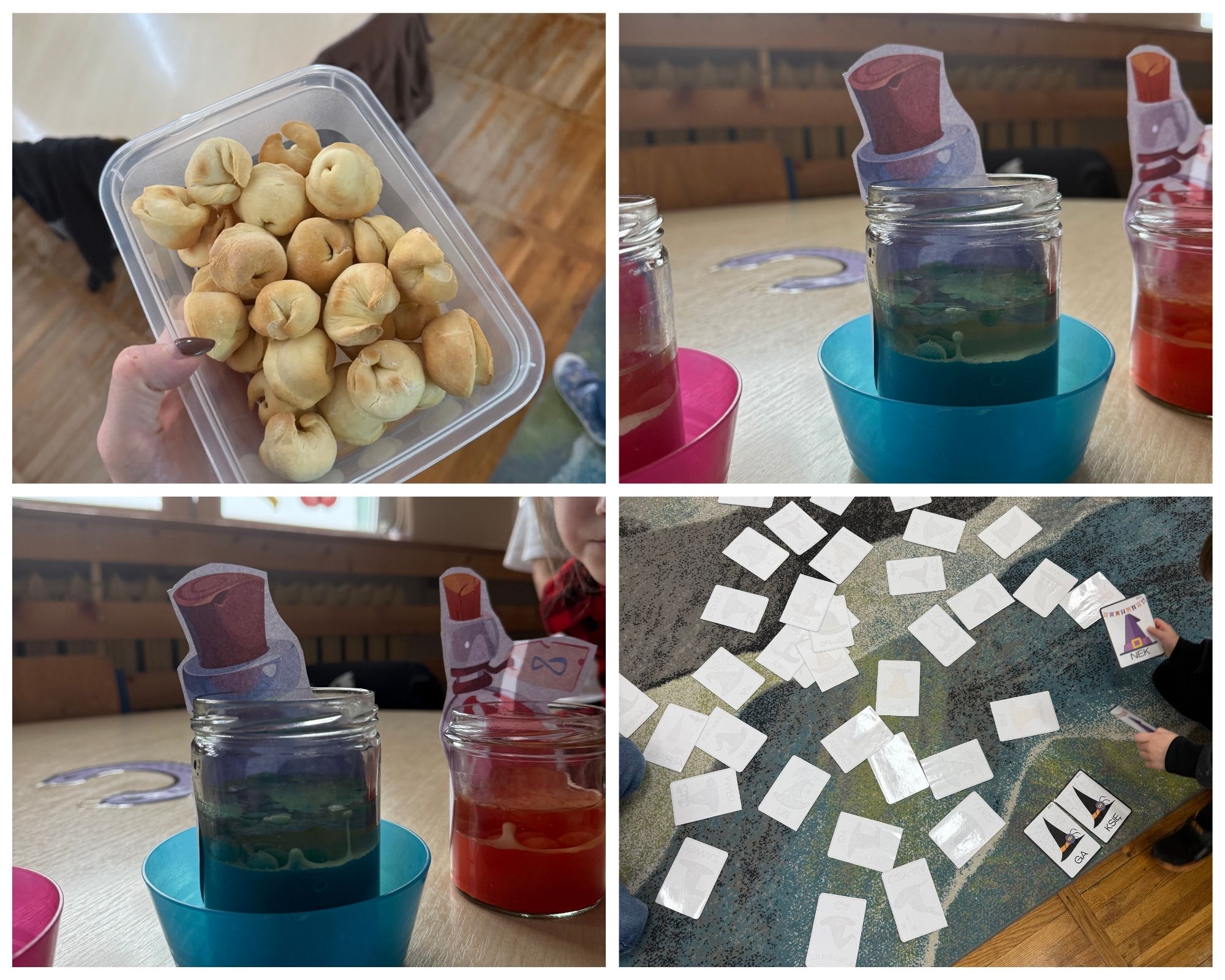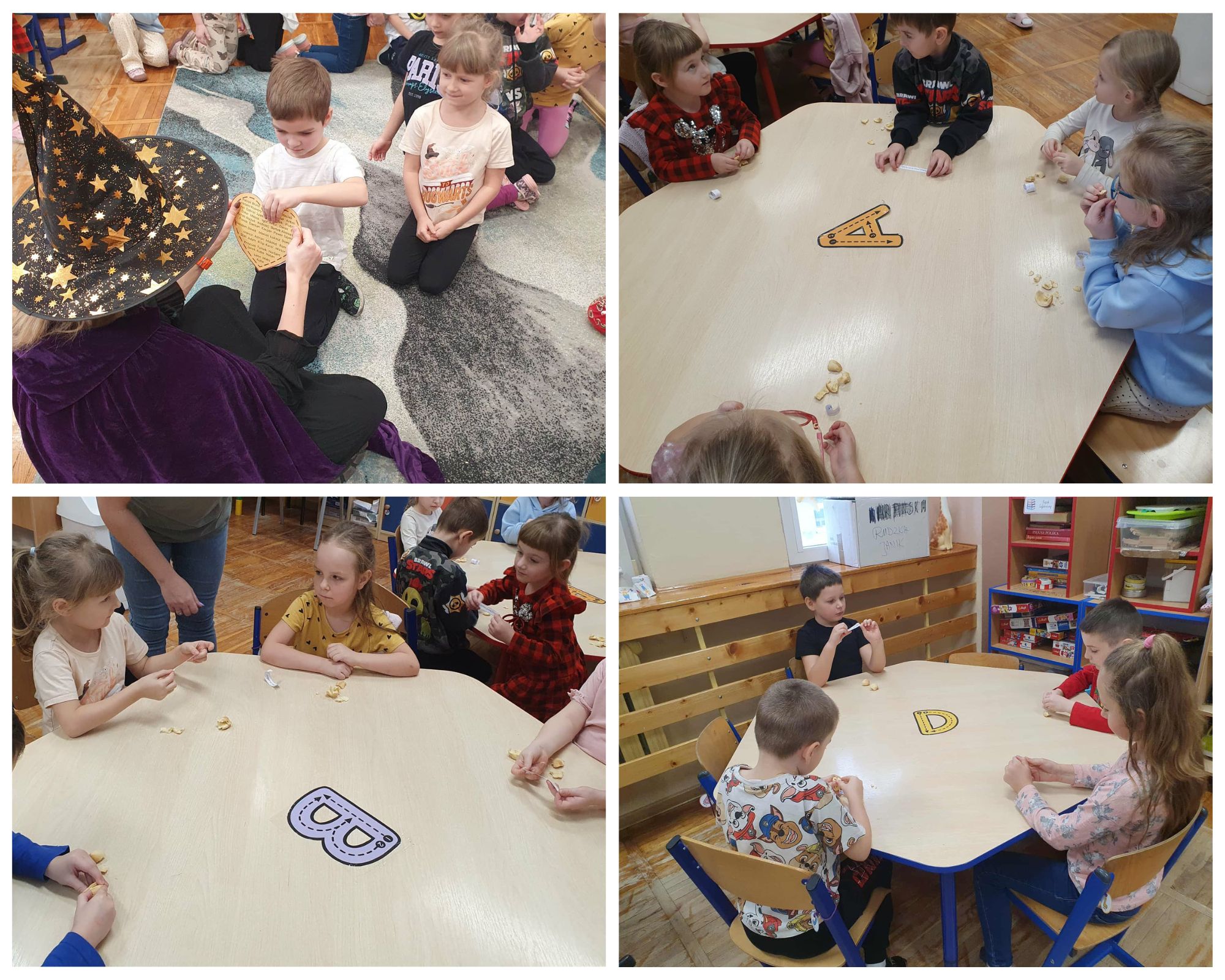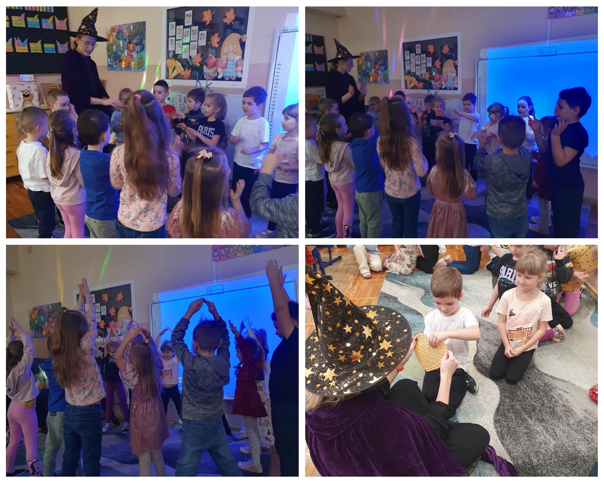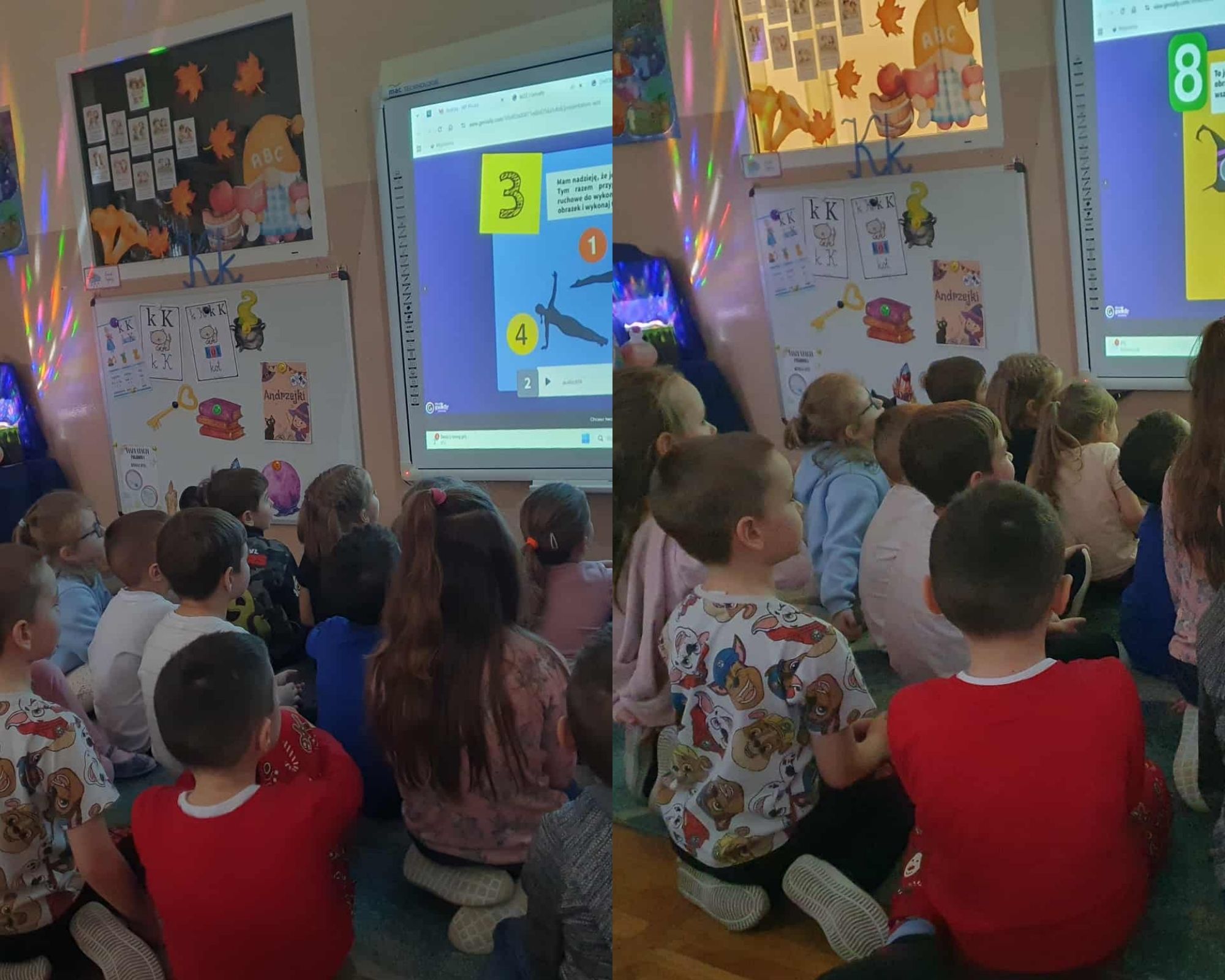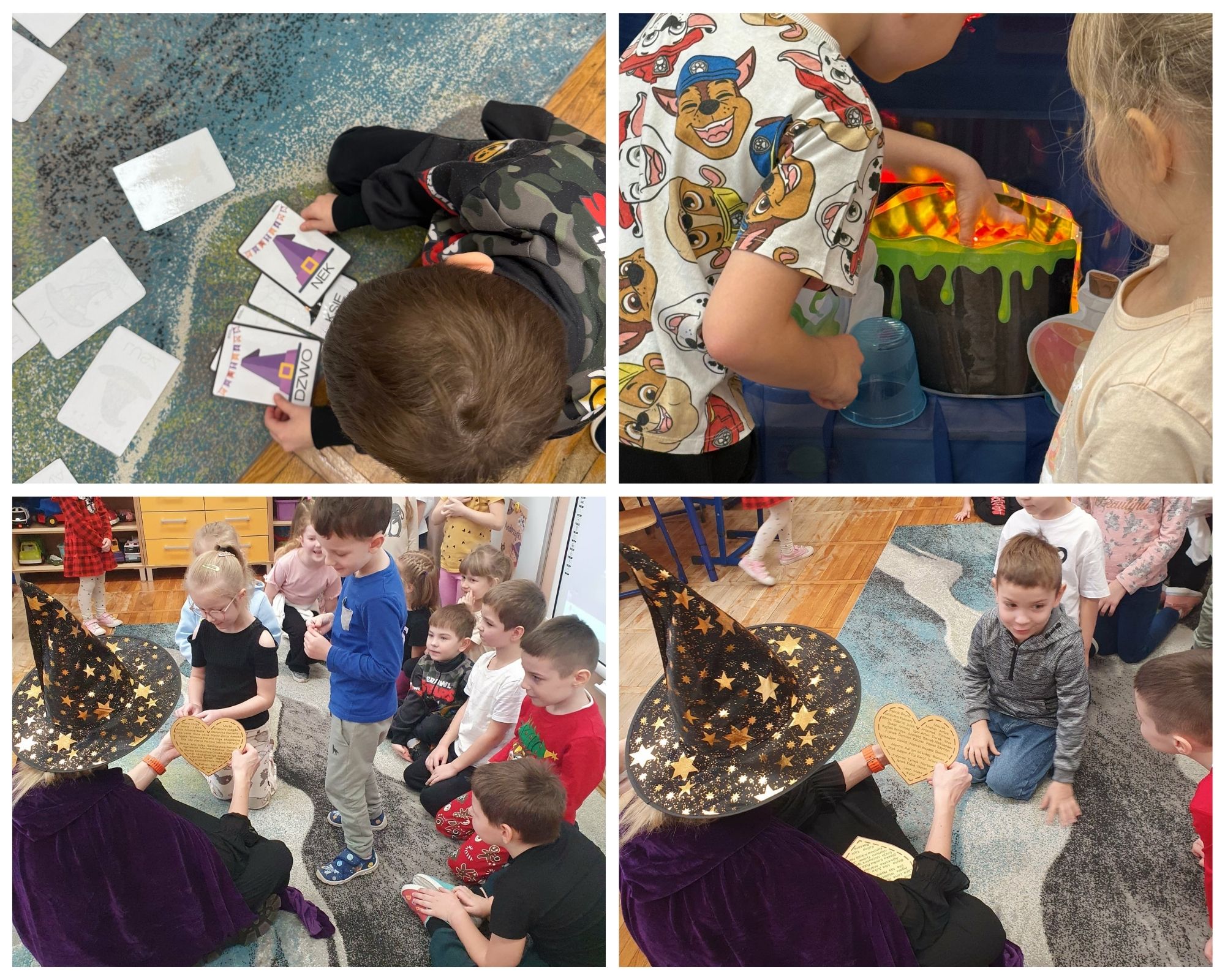 Smerfy miały okazję świętować Andrzejki. W całej sali panował andrzejkowy nastrój. Były dekoracje, ozdobne światła. Odwiedziła salę także czarodziejka. Dzieci brały udział w przygotowanych zadaniach, które rozpoczął tajemniczy list. Były zabawy ruchowe, logiczne, matematyczne. Dzieci obejrzały dwie interaktywne prezentacje na tablicy multimedialnej, kodowały online, rozwiązywały sudoku. W nagrodę czekały na dzieci upieczone przez Panią ciasteczka z wróżbą, które wywołały dużo śmiechu. Dzieci brały także udział w kilku typowych andrzejkowych zabawach, wykonały też tematyczne karty pracy i brały udział w tajemniczym eksperymencie.