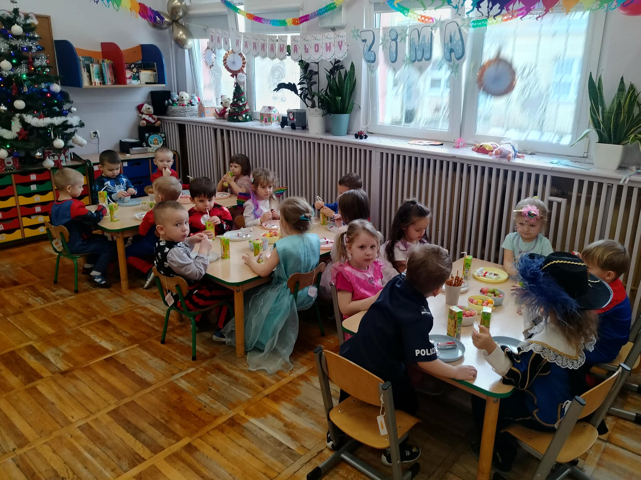 W piątek 23 stycznia dzieci z grupy Słoneczka brały udział w balu karnawałowym. Był to dzień księżniczek, piratów, superbohaterów i wszystkich ulubionych postaci naszych przedszkolaków. Dzieci brały udział w zabawach muzycznych prowadzonych przez animatora, sesji zdjęciowej, a w sali czekał na nich słodki poczęstunek przygotowany przez rodziców.