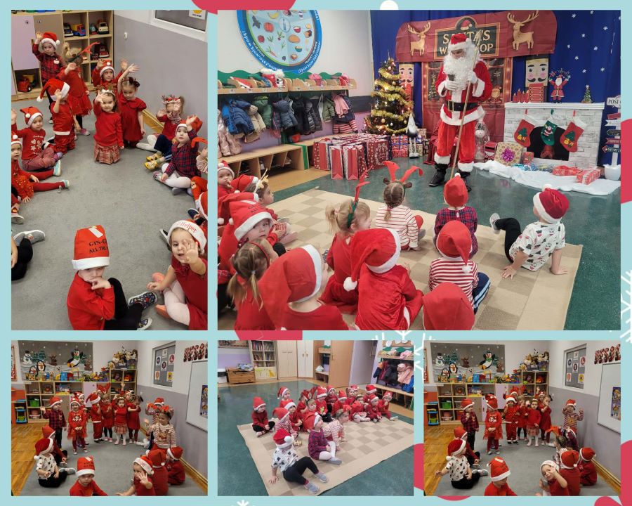 „Mikołajki” to dzień, na który wszystkie dzieci czekają z niecierpliwością! W naszym przedszkolu zapanowała prawdziwa magia, a uśmiechy nie schodziły z twarzy najmłodszych przedszkolaków. Tego dnia od rana w przedszkolu panował gwar, a wszystkie dzieci ubrane były w czerwone mikołajkowe stroje, by powitać wyjątkowego gościa.Z dźwiękiem dzwoneczków przybył do nas prawdziwy Święty Mikołaj! Dzieci z radością powitały Mikołaja piosenką, którą specjalnie dla niego przygotowały. Po obietnicy bycia grzecznymi przez cały rok, Święty Mikołaj obdarował każde dziecko prezentami i słodkościami.Wspólne zdjęcia, śmiech i wesołe tańce sprawiły, że był to dzień pełen radości, ciepła i niezapomnianych wrażeń.