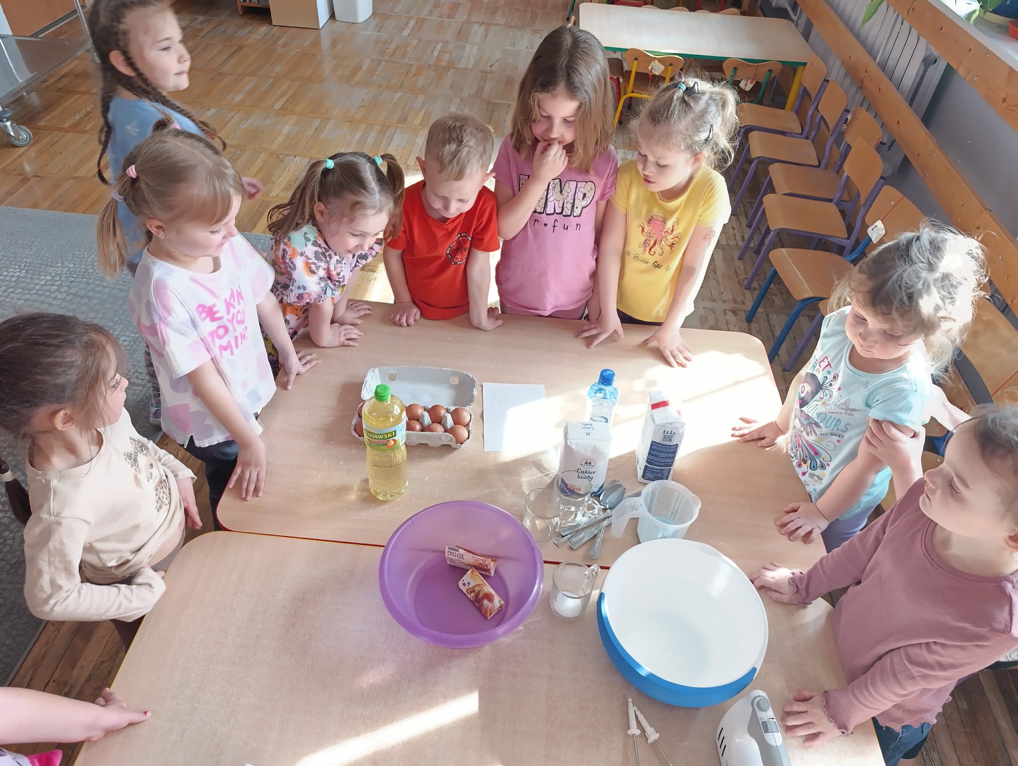 Dzieci z grupy Stokrotki obchodziły Dzień Gofra i przygotowały same pyszności. Poznały zasady bezpiecznego korzystania ze sprzętu kuchennego. Przedszkolaki zapoznały się z urządzeniem elektrycznym jakim jest mikser kuchenny oraz gofrownica. Dzieci z wielkim zapałem odmierzały składniki i wsypywały je do miski. Tego dnia dzieci zajadały się pysznymi, samodzielnie wykonanymi goframi. Zarówno zajęcia kulinarne jak i degustacja dostarczyły dzieciom wiele radości.