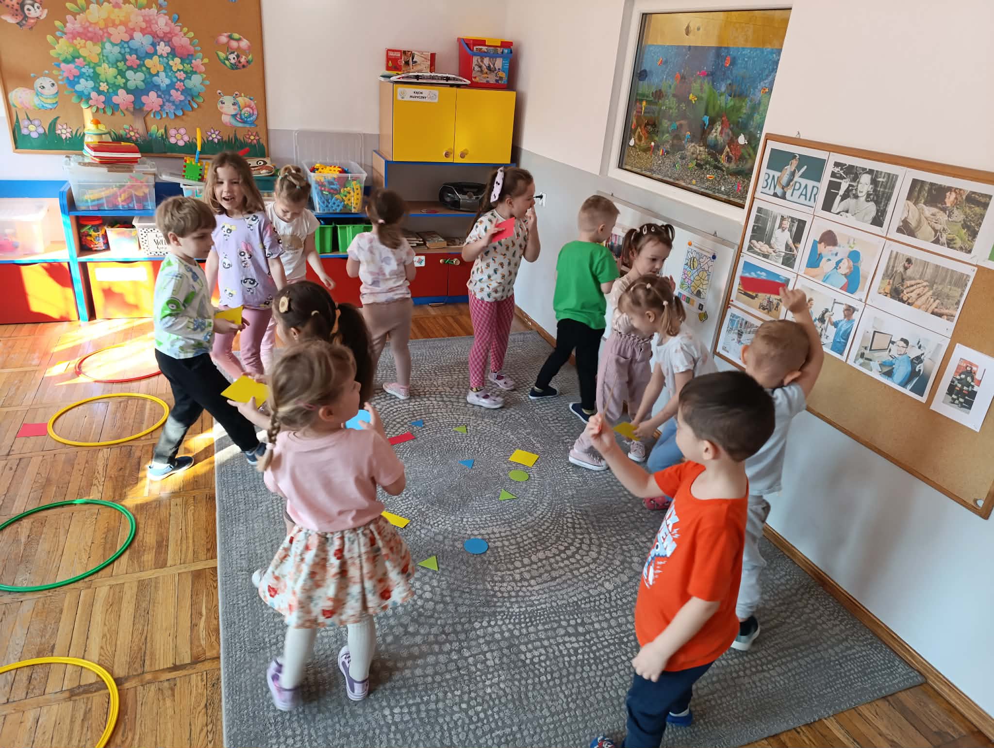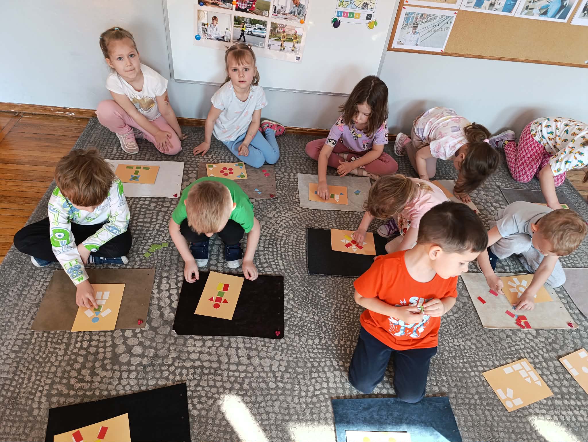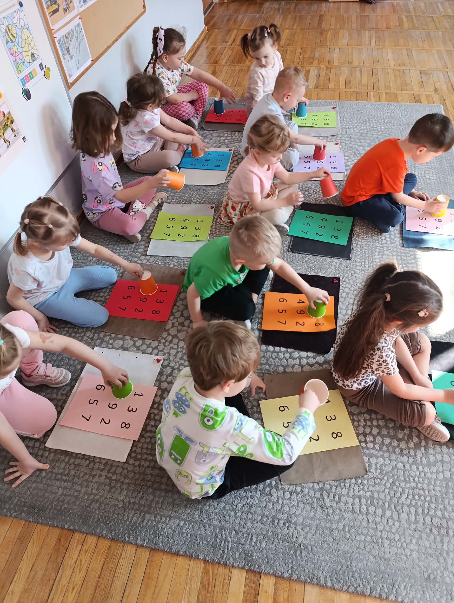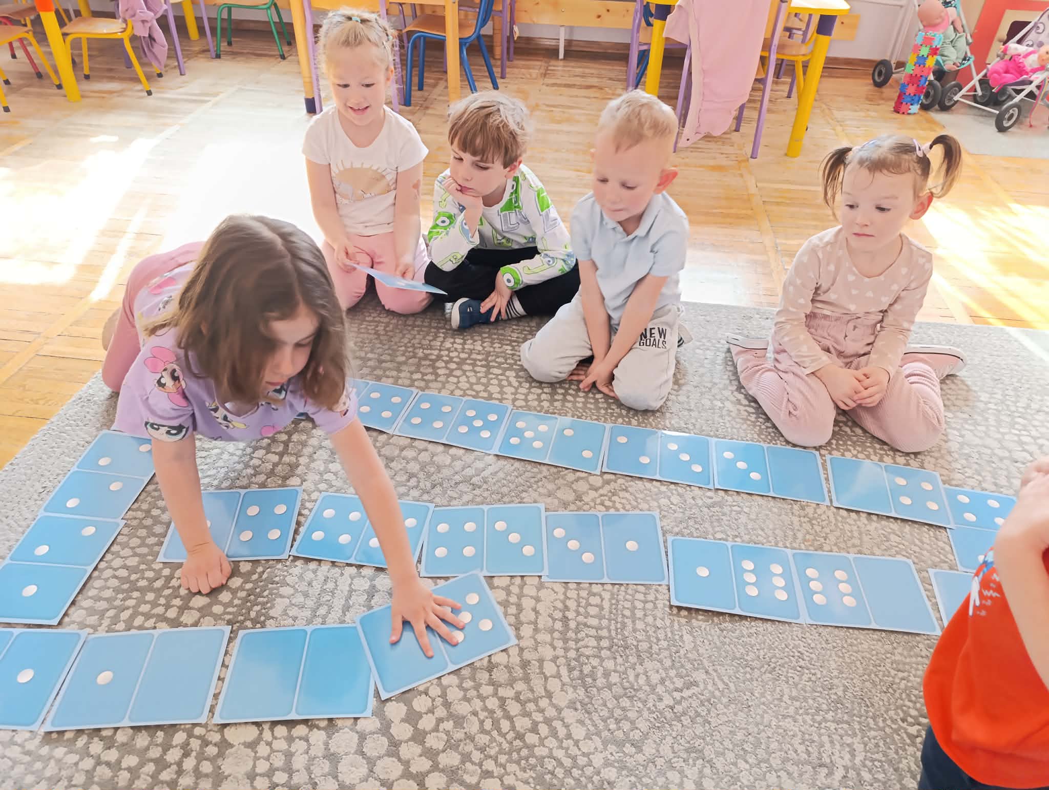 Dzieci z grupy Stokrotki przekonały się po raz kolejny, że matematyka może być ciekawa i daje dużo radości. Przedszkolaki brały udział w aktywnościach związanych z rozwijaniem orientacji przestrzennej, liczeniem oraz rozpoznawaniem figur geometrycznych.