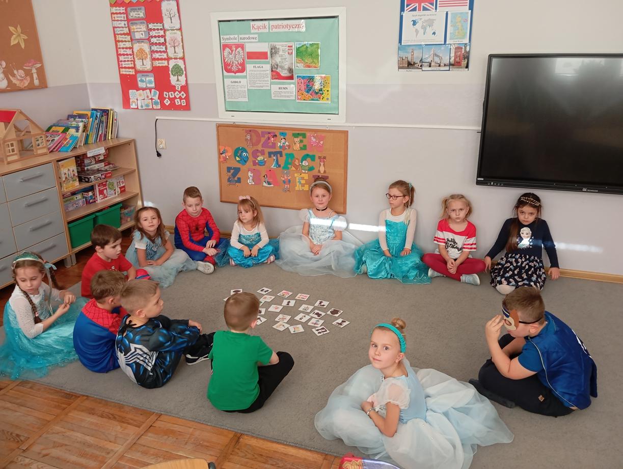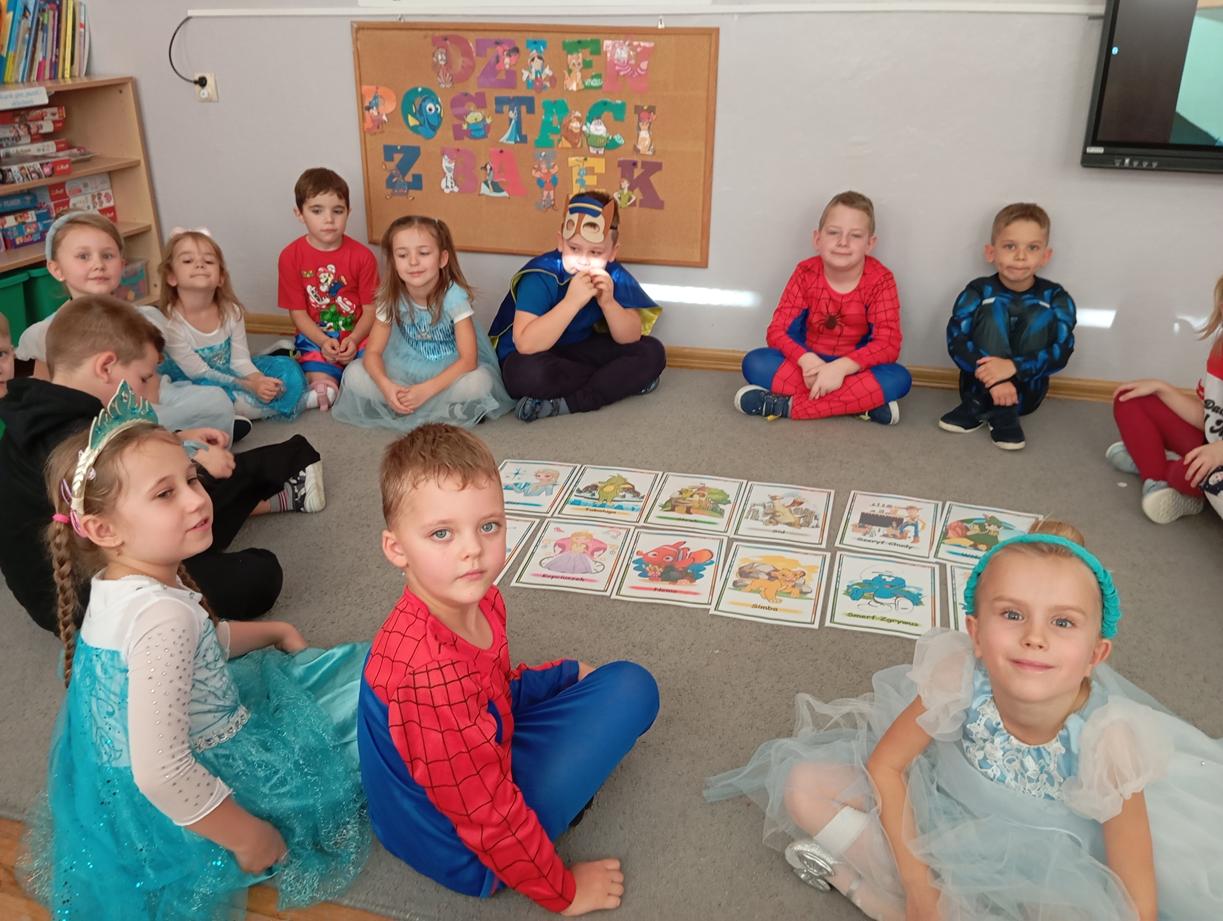 Dnia 6 listopada obchodziliśmy w naszej grupie „Dzień Postaci z Bajek”. W tym dniu dzieci przebrały się za ulubionych bajkowych bohaterów. Przedszkolaki brały udział w tematycznych zabawach, balu. Odgadywały zagadki i tworzyły własne historie. Celem było przybliżenie dzieciom świata bajek, rozwijanie ich wyobraźni i wzbogacanie słownictwa.