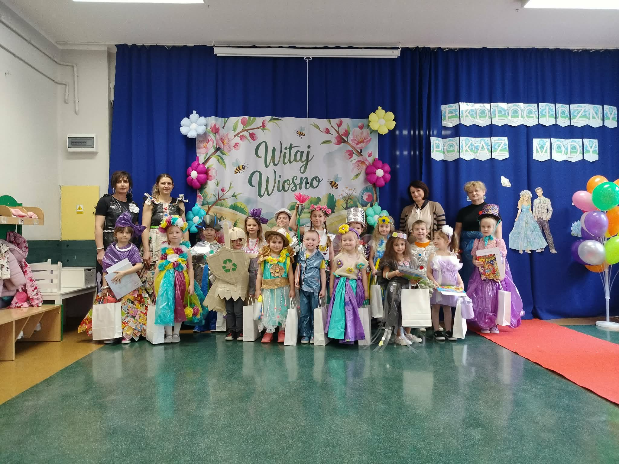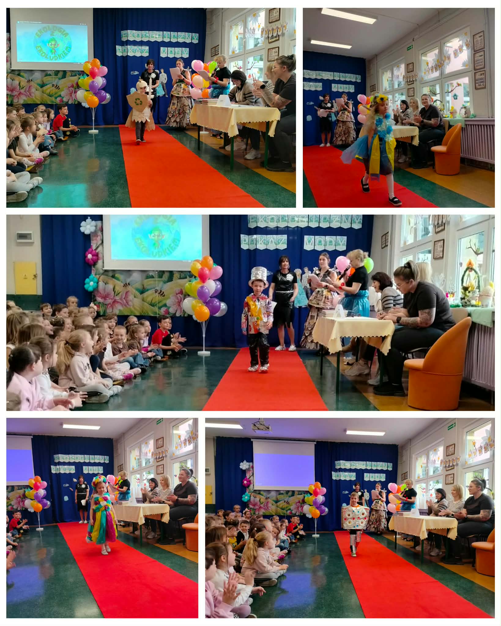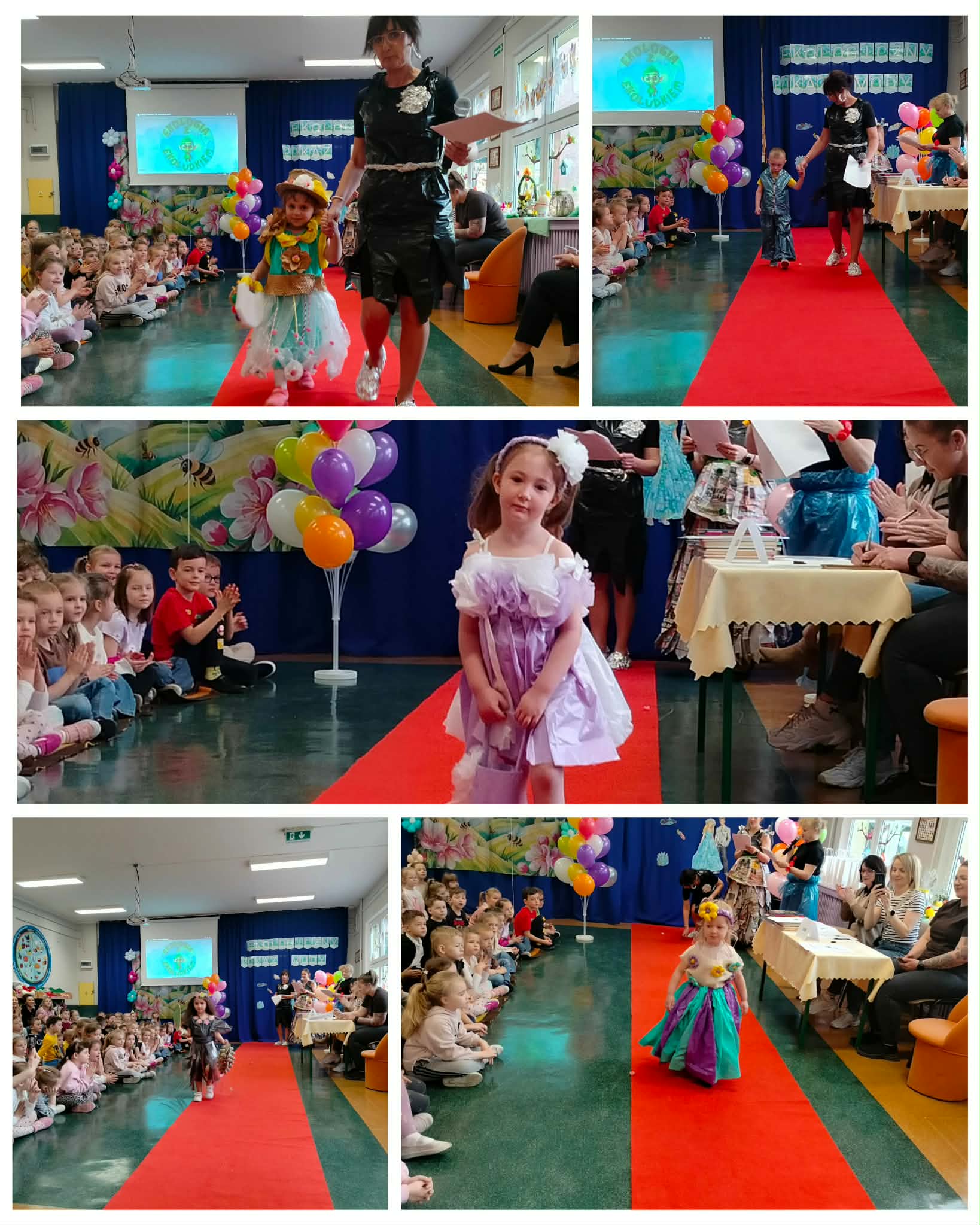 W naszym przedszkolu odbył się konkurs ekologiczny pokaz mody, gdzie przedszkolaki zaprezentowały kreatywne stroje wykonane z materiałów do recyklingu. Dzieci wraz z rodzicami przygotowały pomysłowe kreacje z papieru, folii, kartonów i plastikowych butelek. Mali uczestnicy z dumą prezentowali swoje stroje na wybiegu, a publiczność nagradzała ich brawami. Wydarzenie było nie tylko świetną zabawą, ale także okazją do nauki o ochronie środowiska. Na zakończenie wszystkie dzieci otrzymały dyplomy i upominki.
