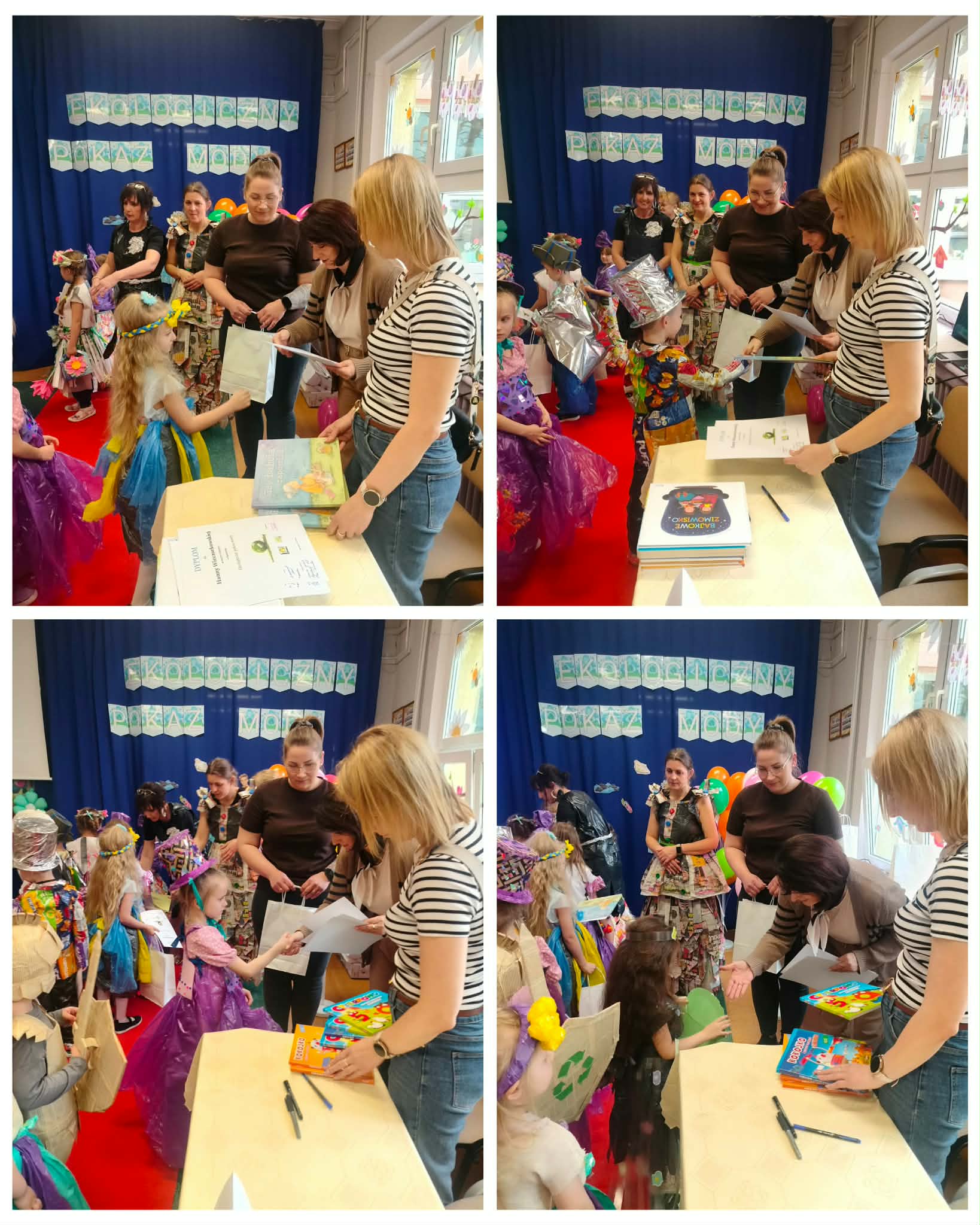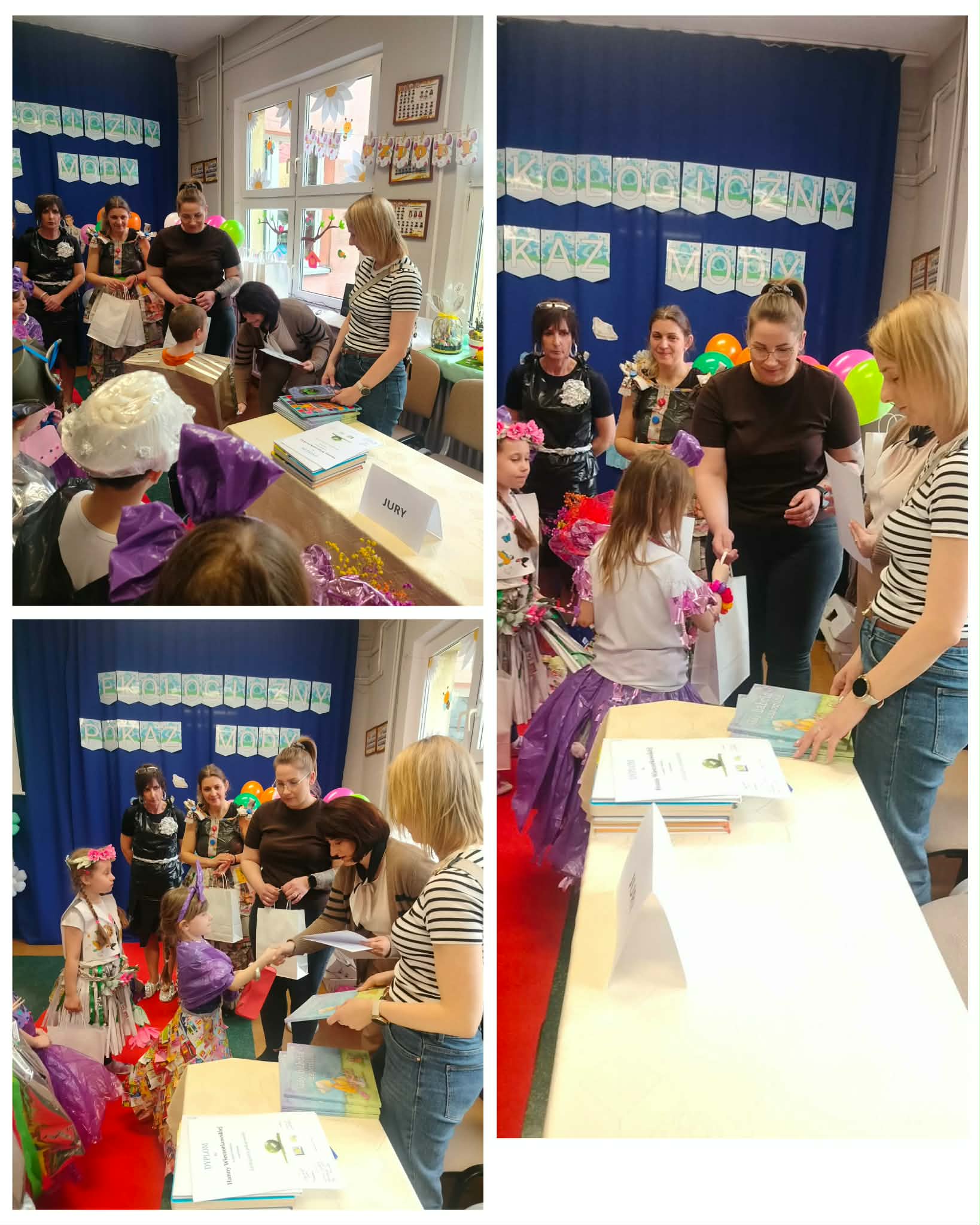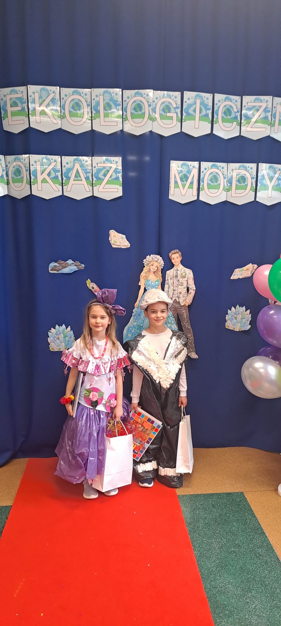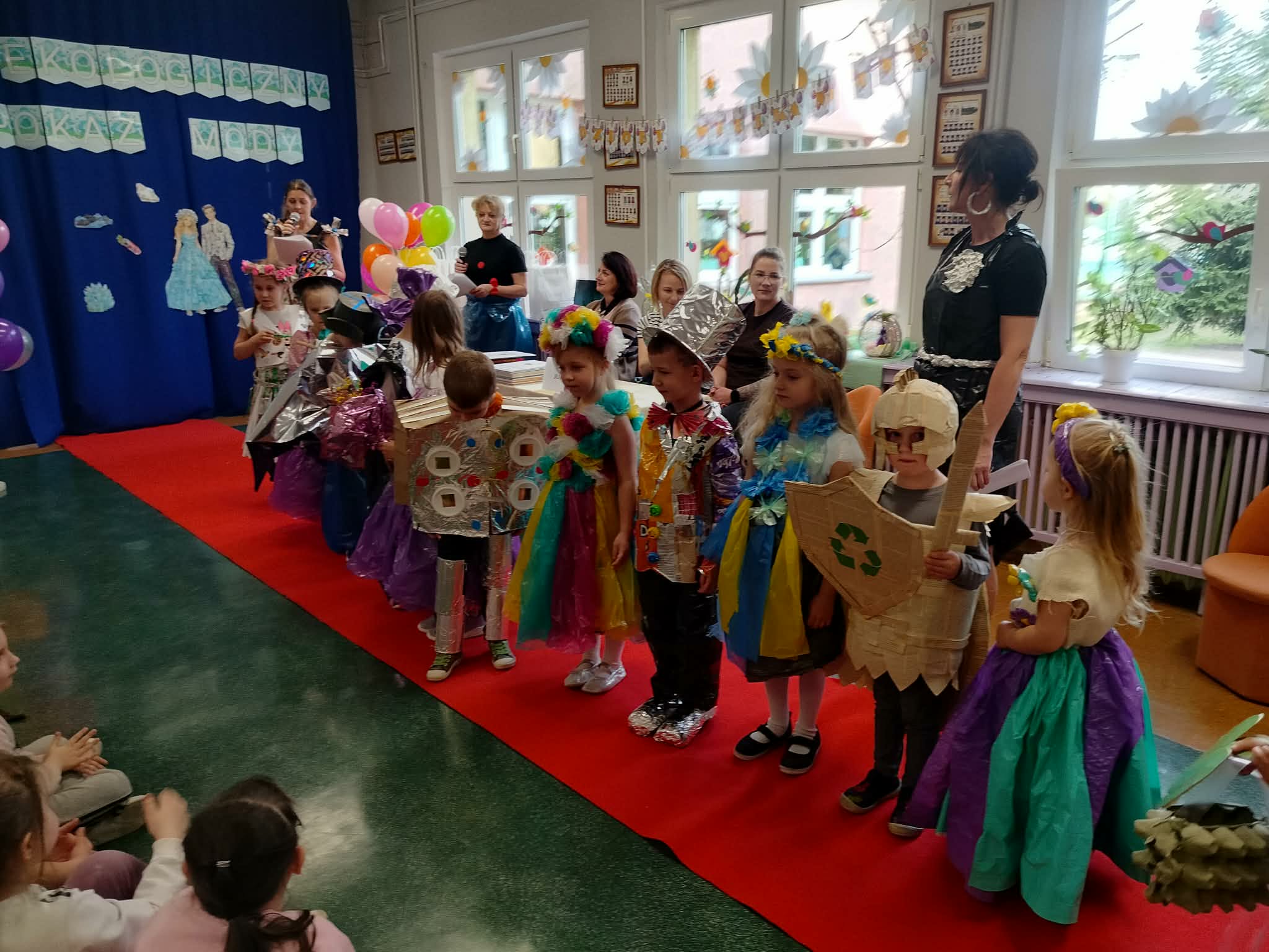 W naszym przedszkolu odbył się konkurs ekologiczny pokaz mody, gdzie przedszkolaki zaprezentowały kreatywne stroje wykonane z materiałów do recyklingu. Dzieci wraz z rodzicami przygotowały pomysłowe kreacje z papieru, folii, kartonów i plastikowych butelek. Mali uczestnicy z dumą prezentowali swoje stroje na wybiegu, a publiczność nagradzała ich brawami. Wydarzenie było nie tylko świetną zabawą, ale także okazją do nauki o ochronie środowiska. Na zakończenie wszystkie dzieci otrzymały dyplomy i upominki.