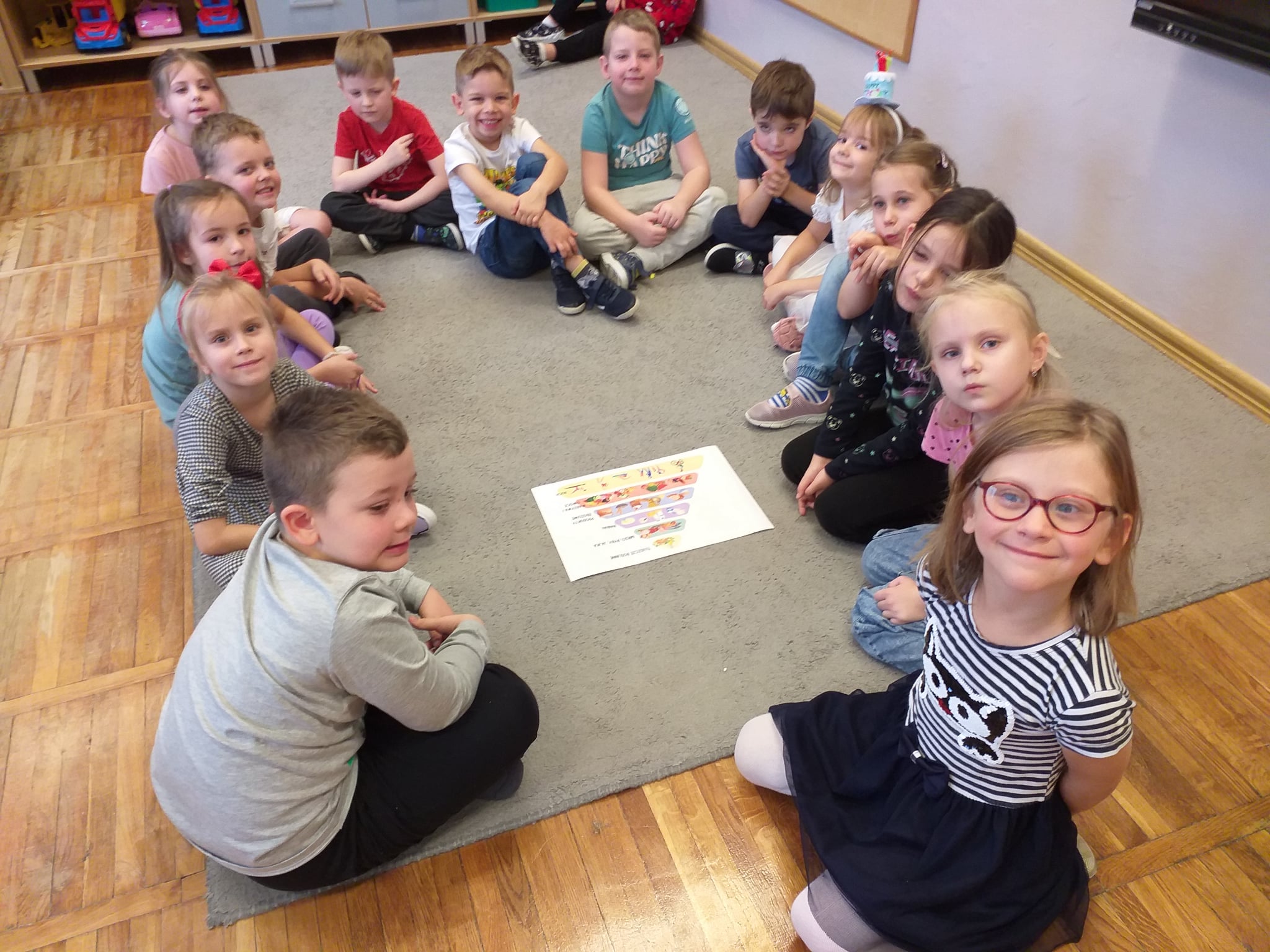 Europejski Dzień Zdrowego Jedzenia i Gotowania to święto obchodzone corocznie w listopadzie. Zostało zainicjowane w 2007 roku z uwagi na problemy nadwagi i otyłości coraz bardziej szerzące się w Europie. Jednym z jego celów jest promowanie zdrowych nawyków żywieniowych, promowanie regularnego spożywania posiłków oraz informowanie o konsekwencjach złej diety. Dzień ten był obchodzony także przez dzieci z grupy Odkrywcy. Na początku dzieci obejrzały dwa filmy edukacyjne na temat zdrowego odżywiania. Następnie poznawały piramidę zdrowego żywienia. Wspólnie tworzyły własną piramidę zdrowego żywienia. Segregowały produkty zdrowe i niezdrowe. Układały małe obrazki z puzzli. Bawiły się w zabawy ruchowe z emblematami owoców i warzyw. Brały udział w quizie o zdrowym odżywianiu. Mając do dyspozycji zielone i czerwone kartoniki bawiły się w zabawę „Prawda/ fałsz”, decydując czy zdanie jest prawdziwe czy fałszywe.