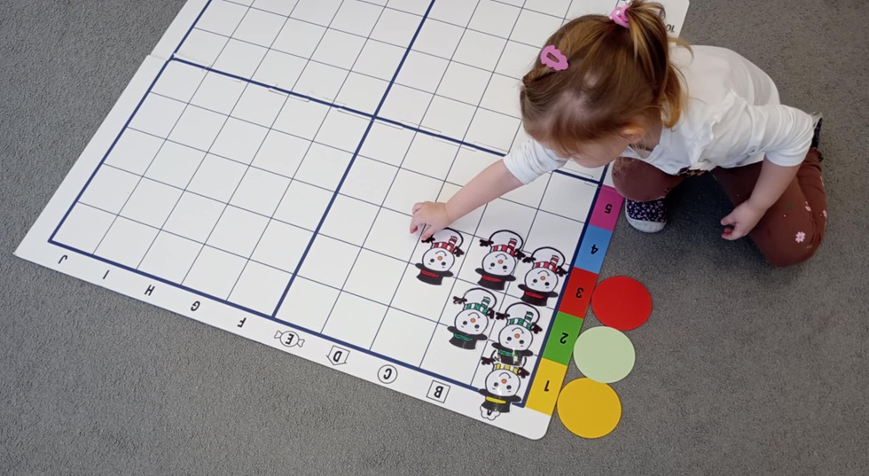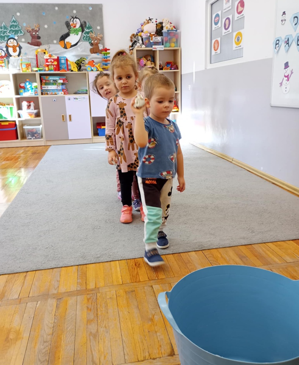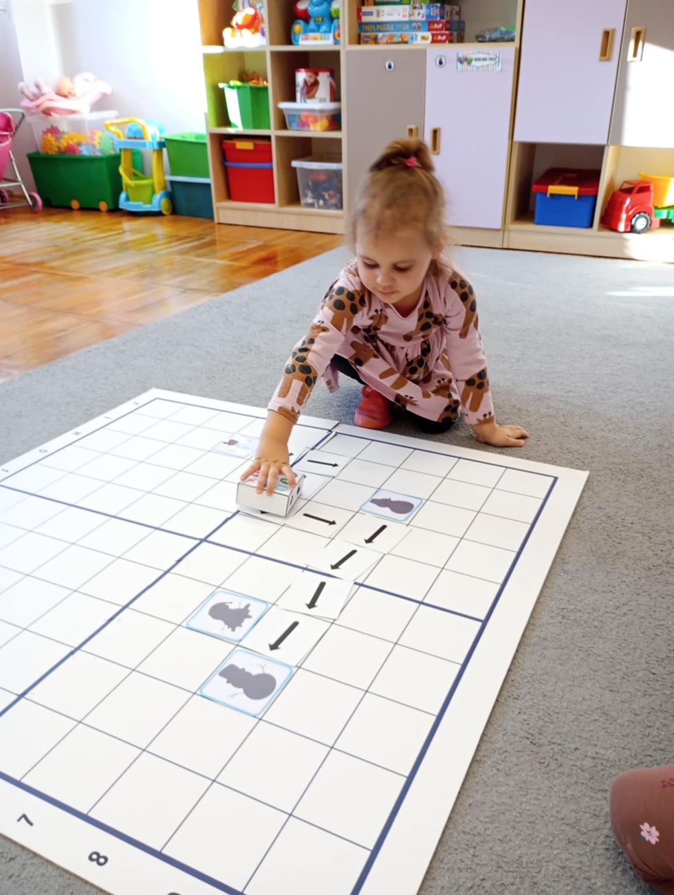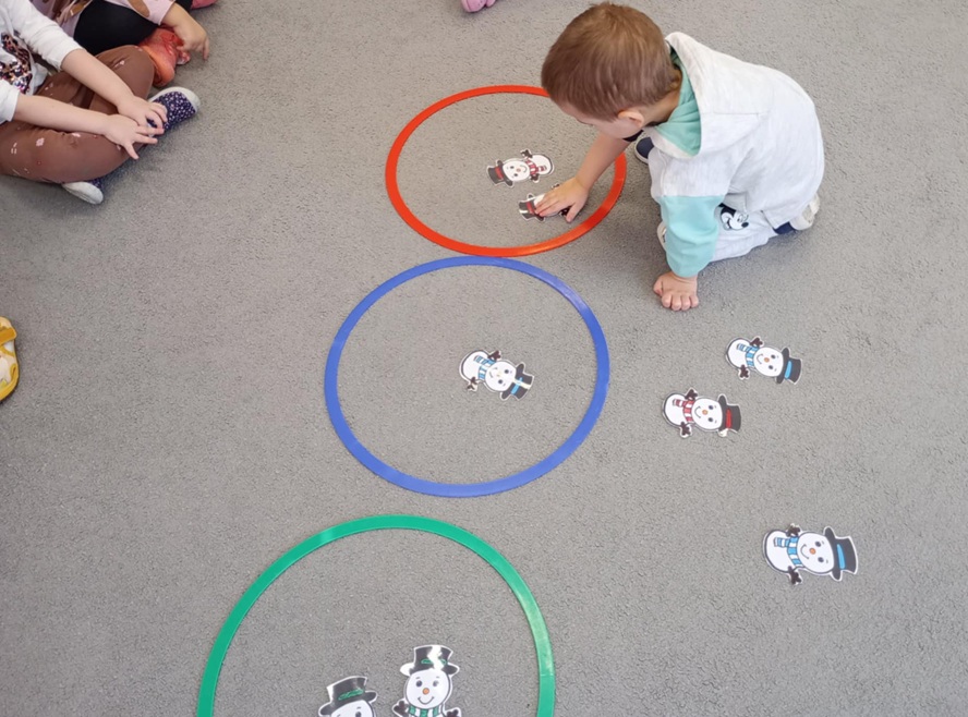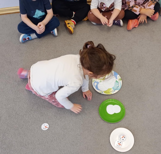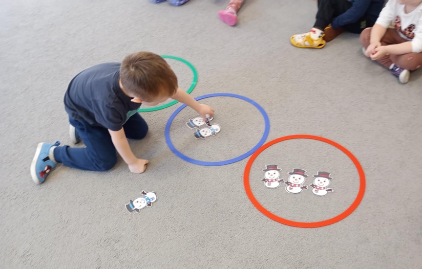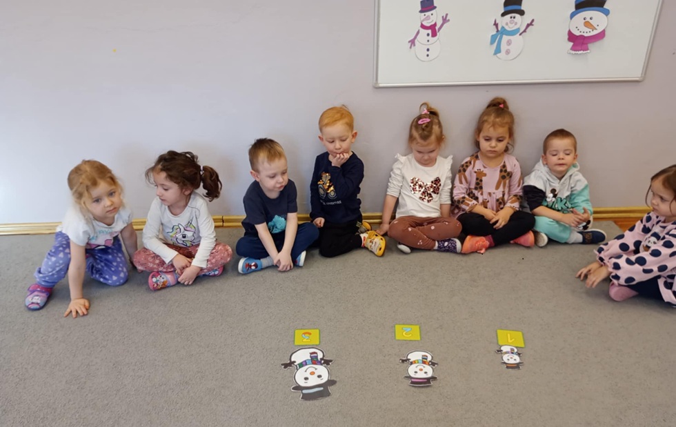 Już od najmłodszych grup dzieci wprowadzane są w świat matematyki czemu doskonale służy innowacyjna metoda edukacji E. Gruszczyk – Kolczyńskiej. Dzieci podczas zabaw z bałwankami przeliczały je, porównywały ich wielkość, czy segregowały biorąc pod uwagę różne ich cechy. Papierowe ”śniegowe kule” pomogły dzieciom ćwiczyć orientację względem własnego ciała oraz celność. Ponadto maluszki ćwiczyły kodowanie wyznaczając drogę za pomocą strzałek. Dobra zabawa i nauka to świetna sprawa.