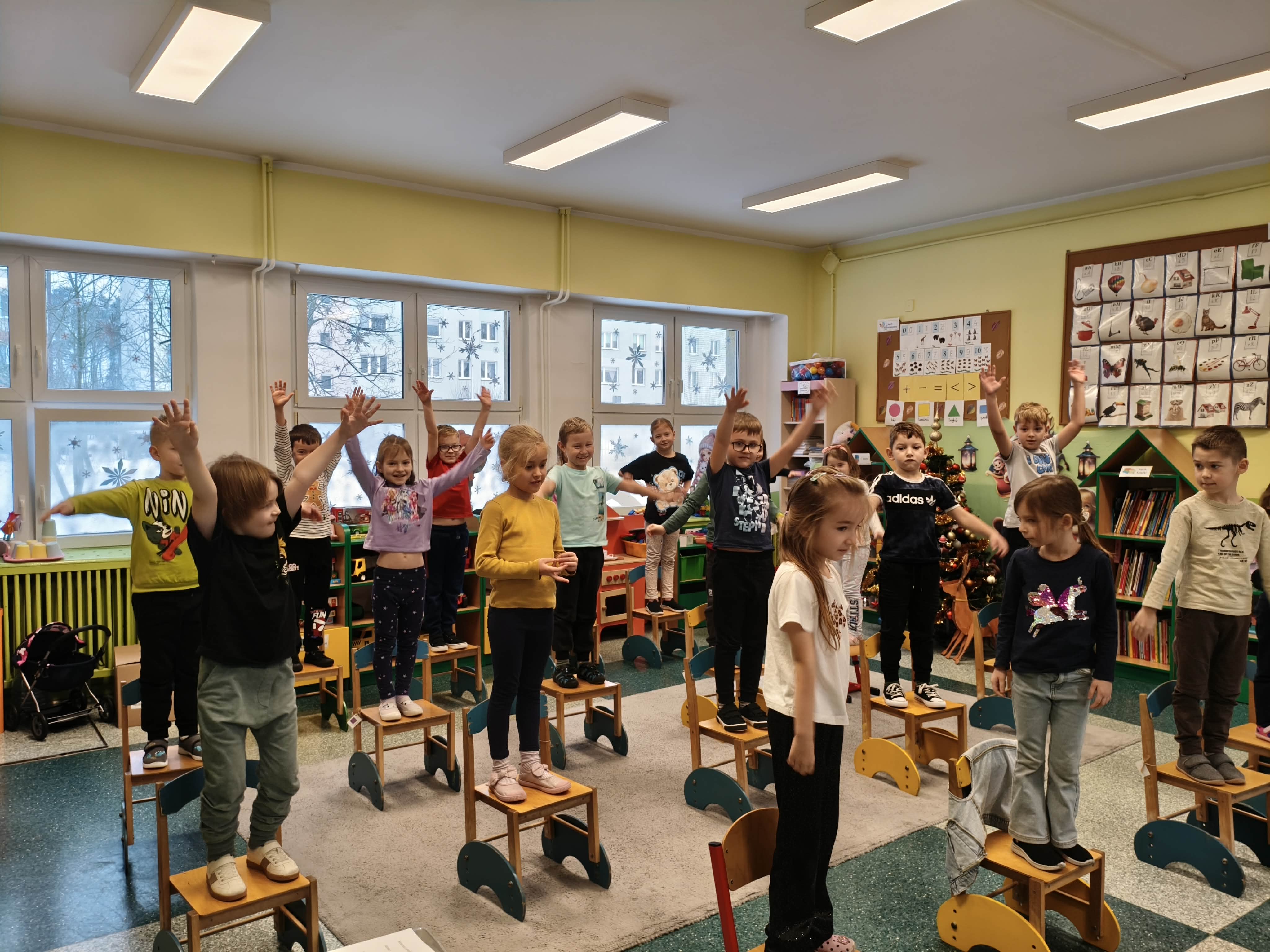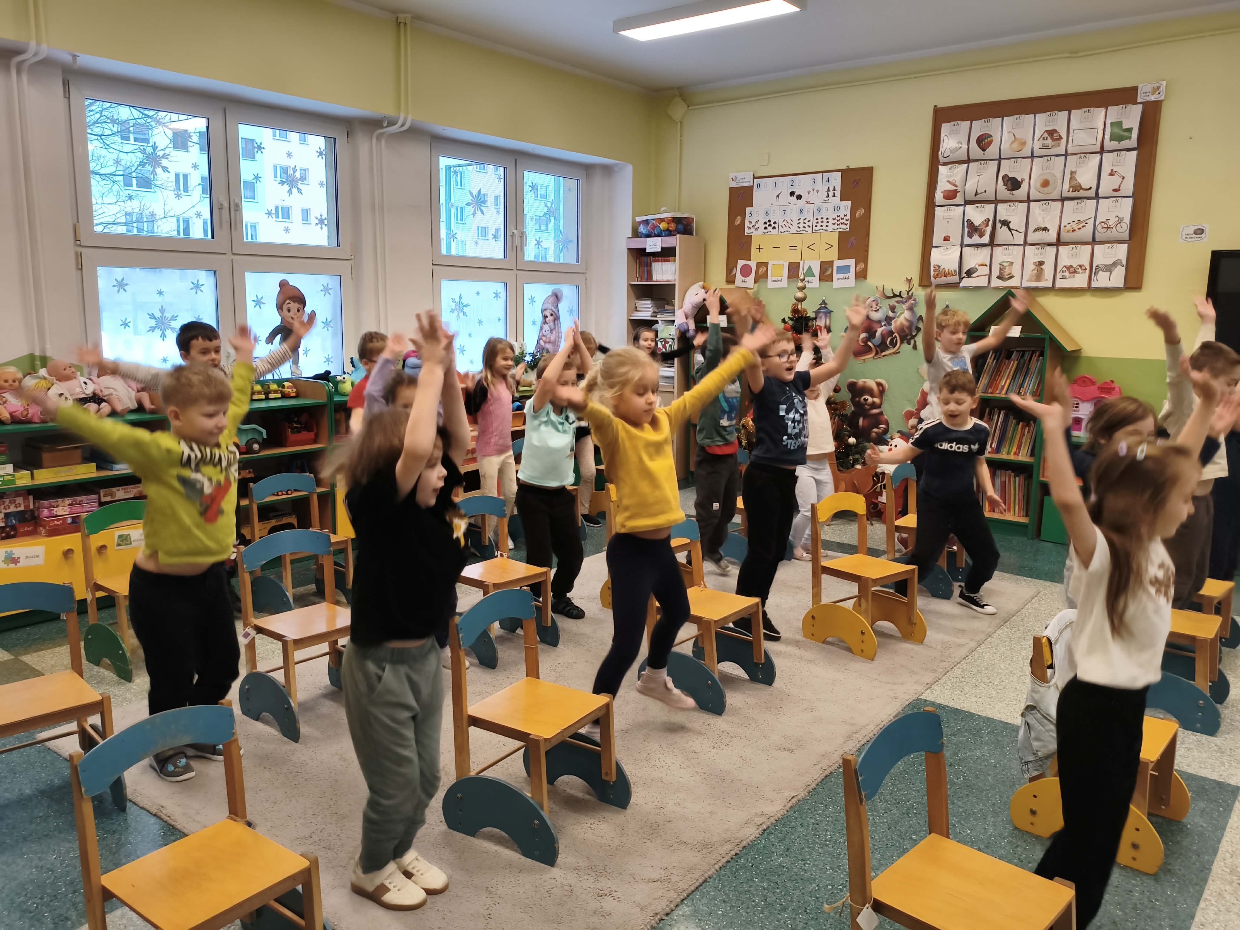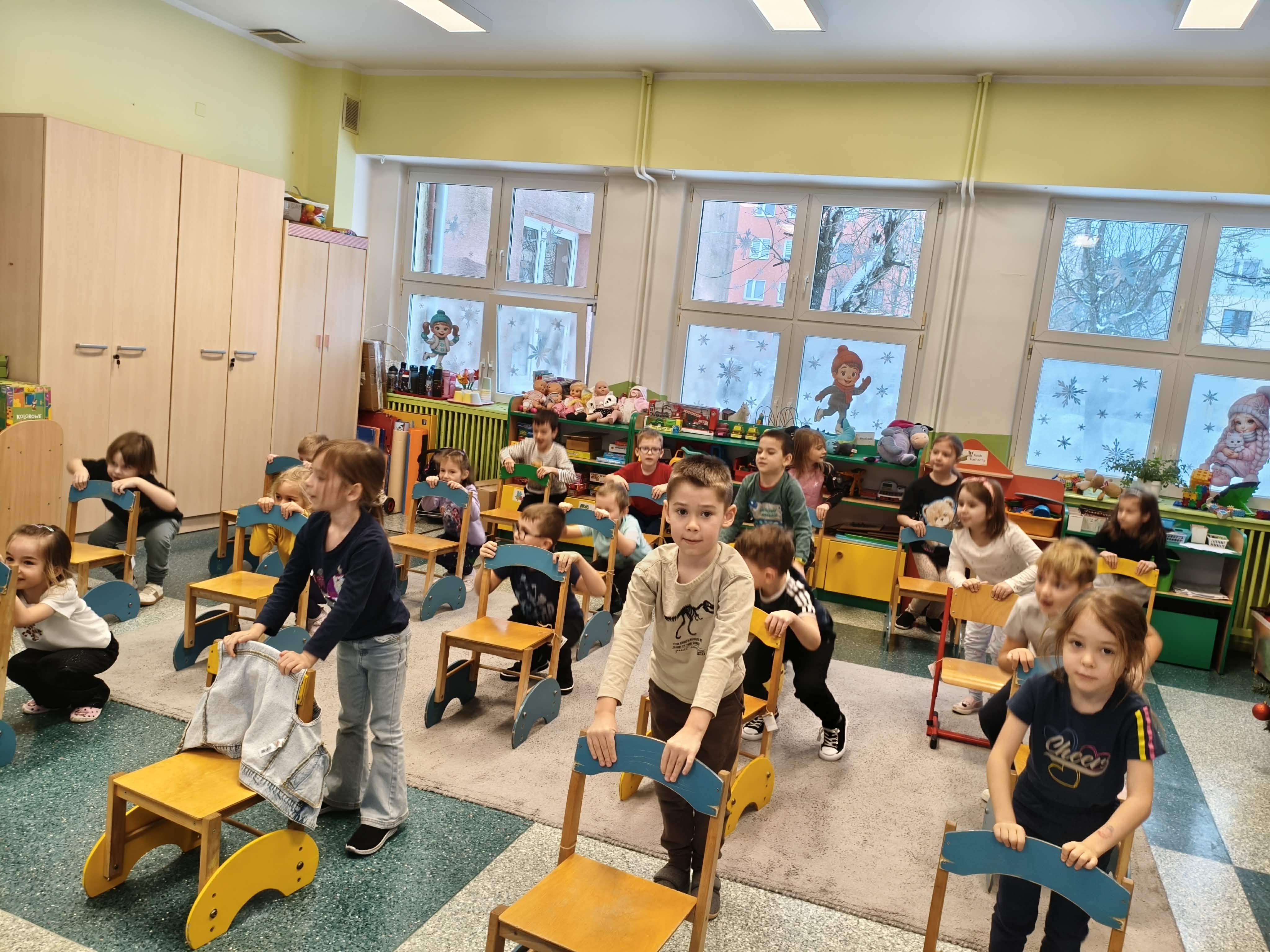 Dziś w grupie Motylki dzieci po raz kolejny udowodniły, że matematyka może być świetną zabawą! W ramach innowacji matematycznej wykorzystały… krzesła, aby doskonalić umiejętność określania kierunków w przestrzeni. Przedszkolaki z ogromnym zaangażowaniem odnajdywały przestrzeń nad, pod, obok, przed, za, po prawej i po lewej stronie wykorzystując do tego własne krzesełka. Nauka przez działanie i ruch to coś, co uwielbiają — a efekty widać od razu.