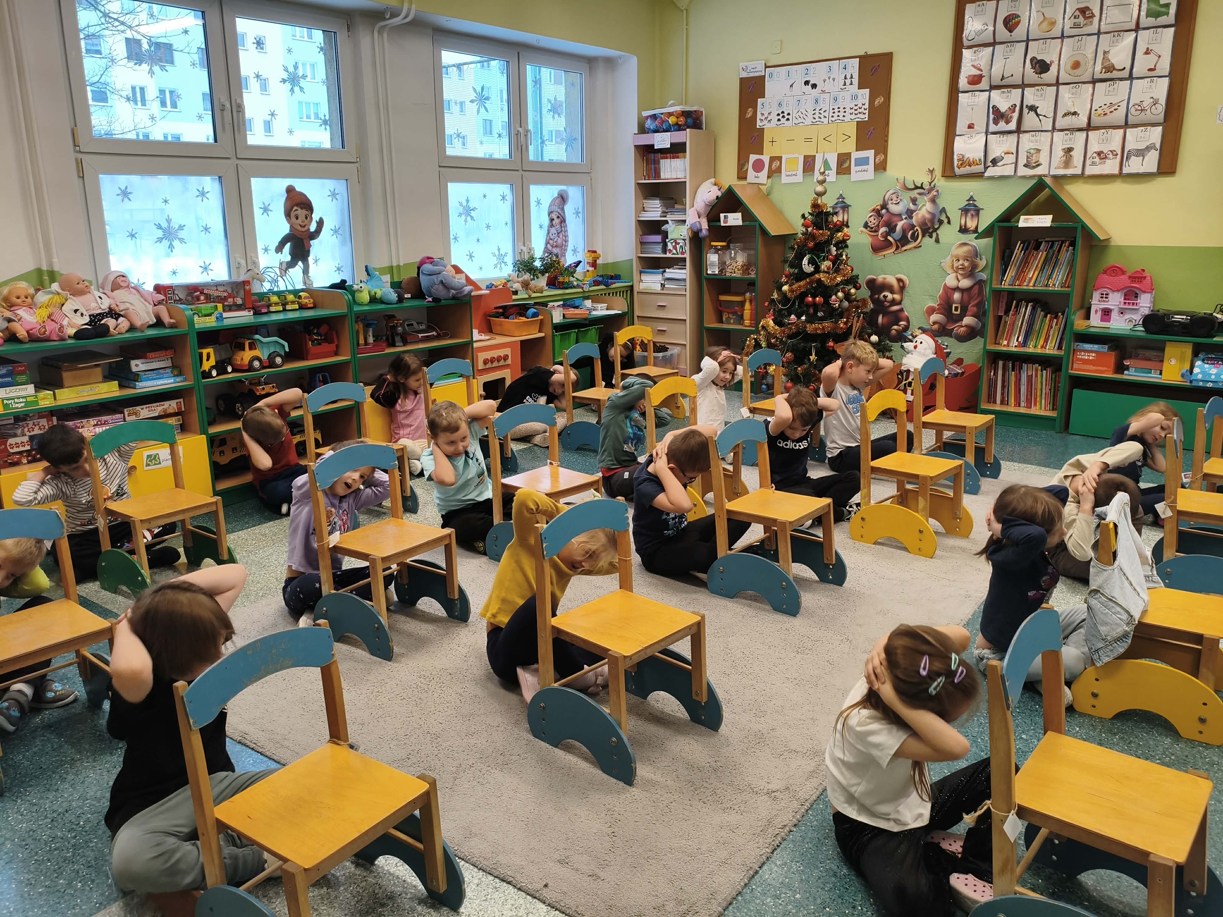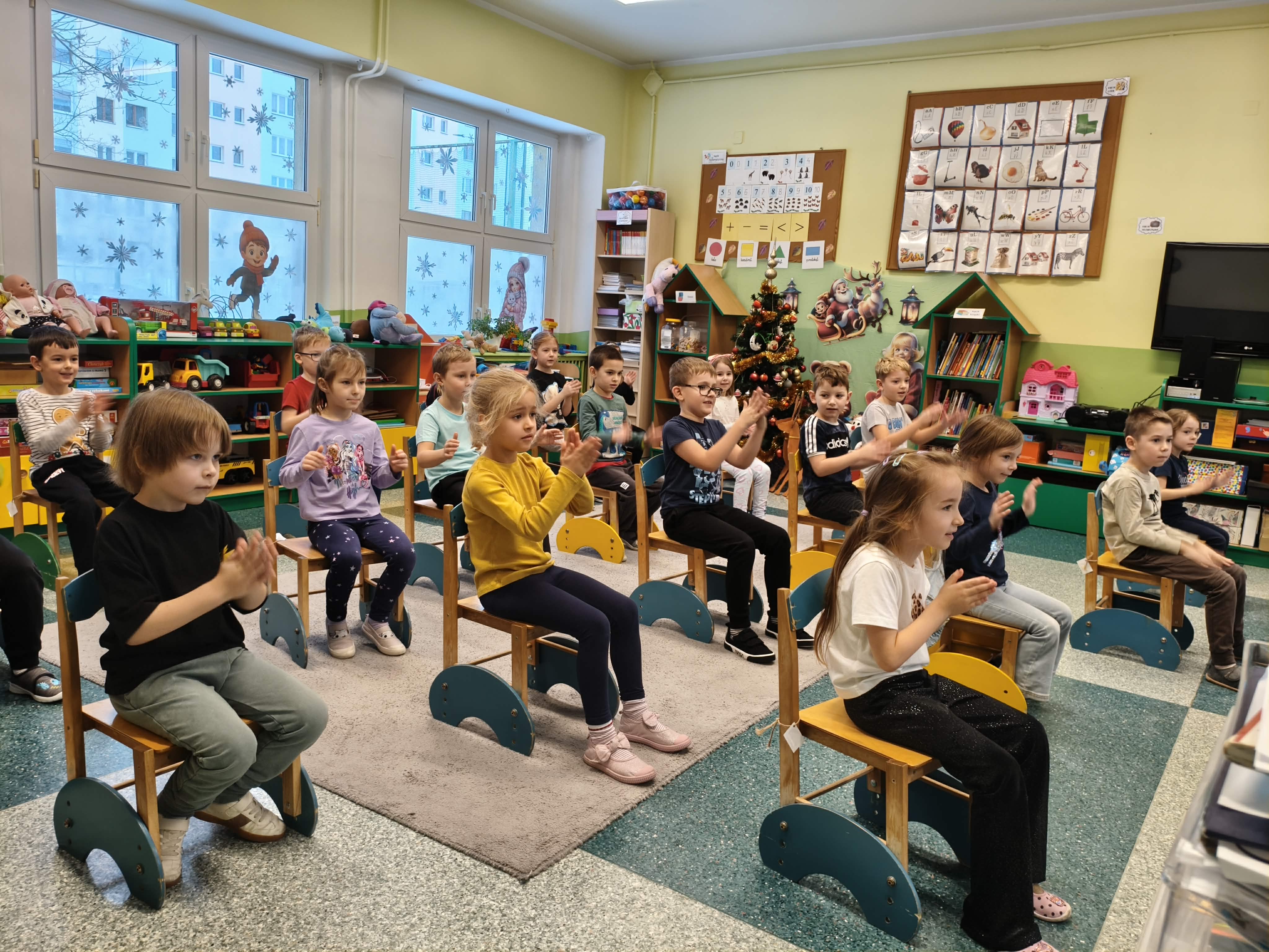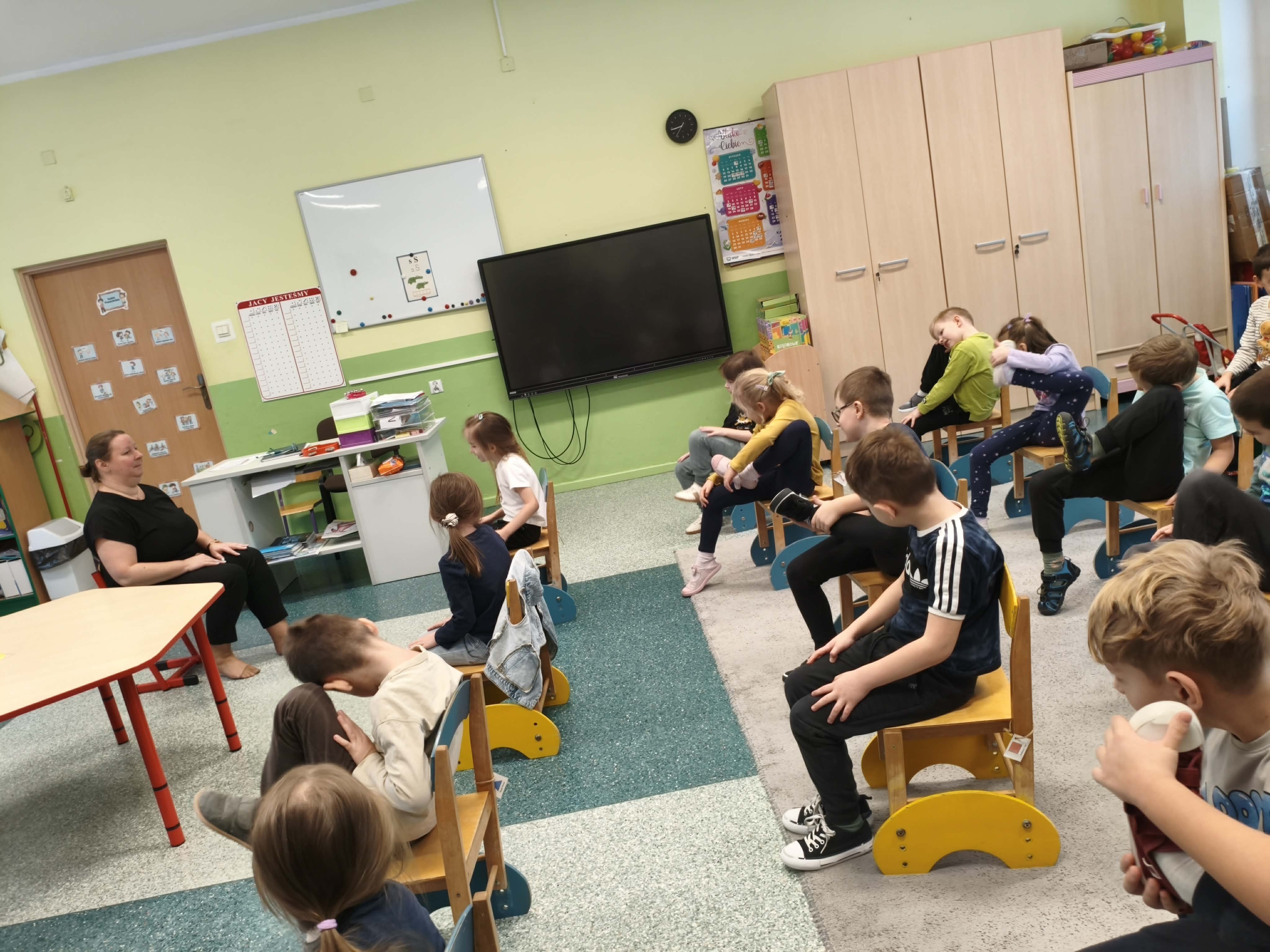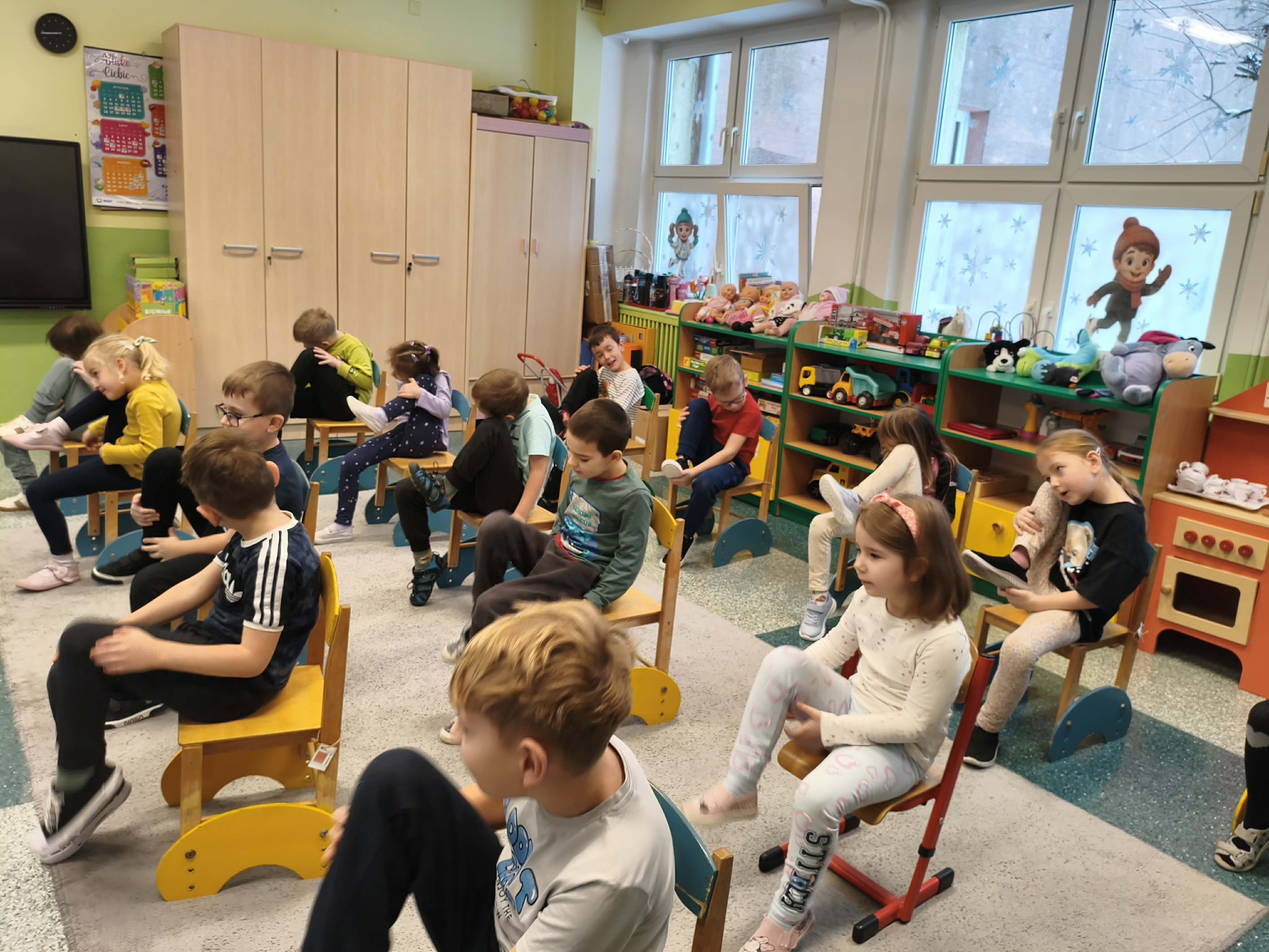 Dziś w grupie Motylki dzieci po raz kolejny udowodniły, że matematyka może być świetną zabawą! W ramach innowacji matematycznej wykorzystały… krzesła, aby doskonalić umiejętność określania kierunków w przestrzeni. Przedszkolaki z ogromnym zaangażowaniem odnajdywały przestrzeń nad, pod, obok, przed, za, po prawej i po lewej stronie wykorzystując do tego własne krzesełka. Nauka przez działanie i ruch to coś, co uwielbiają — a efekty widać od razu.