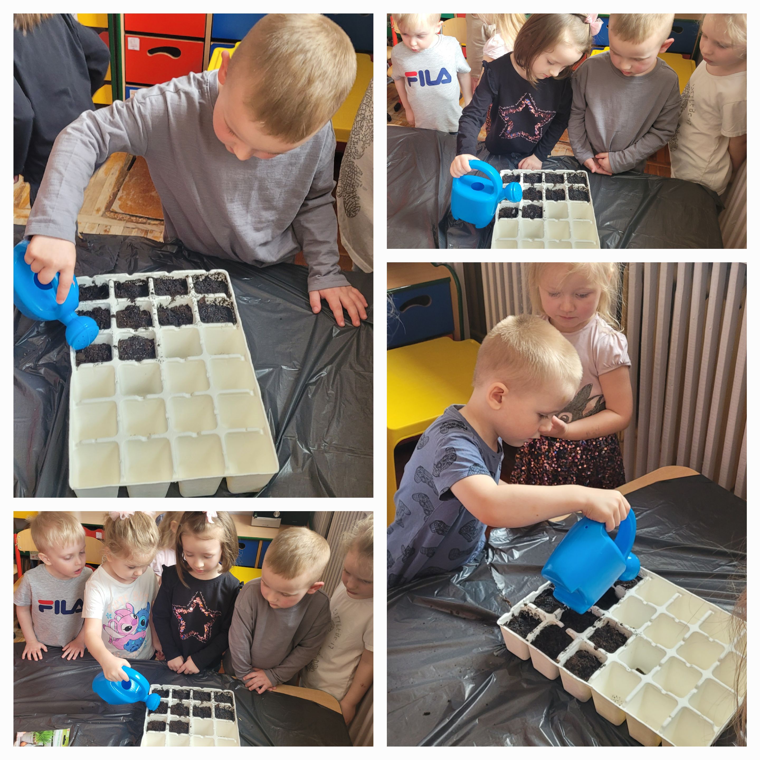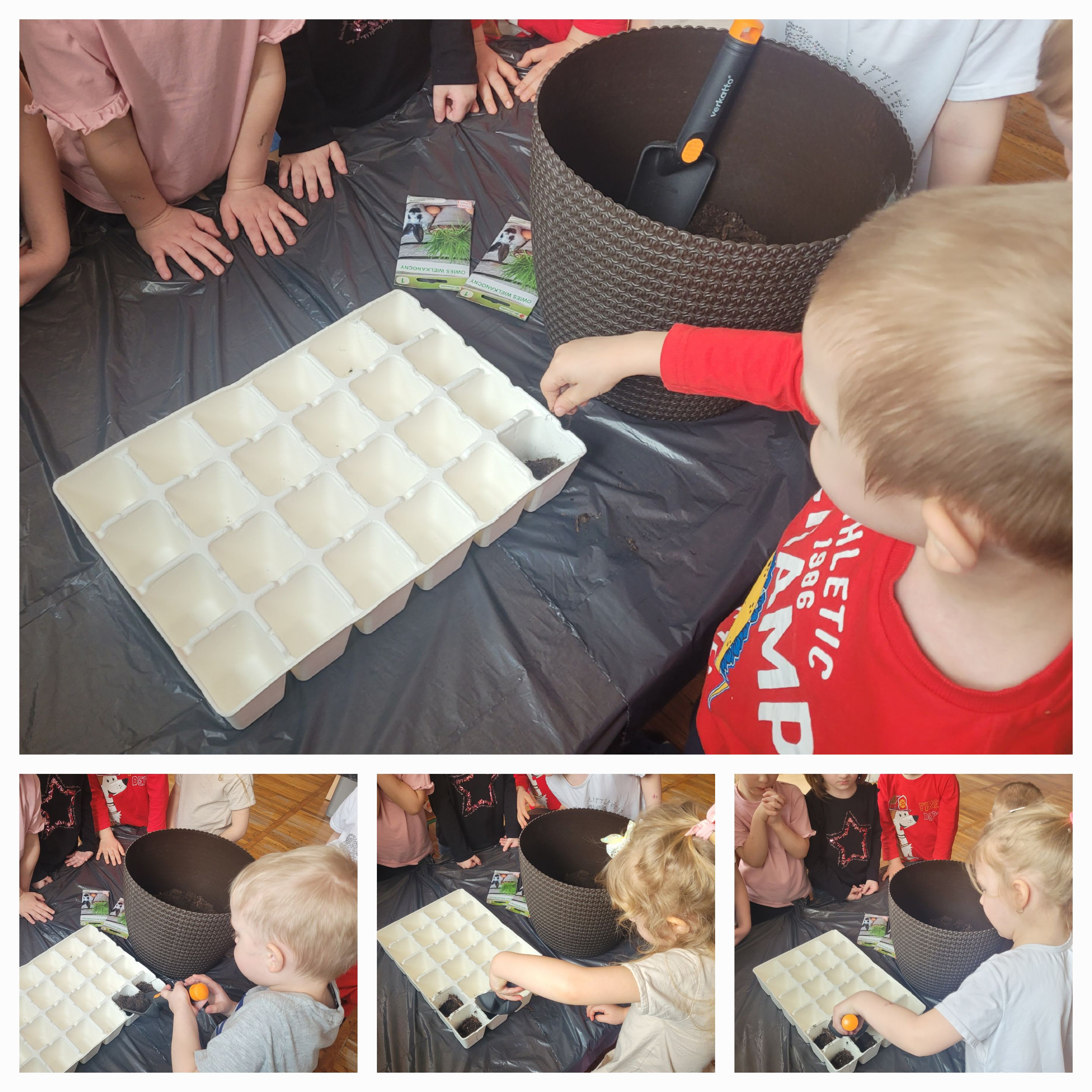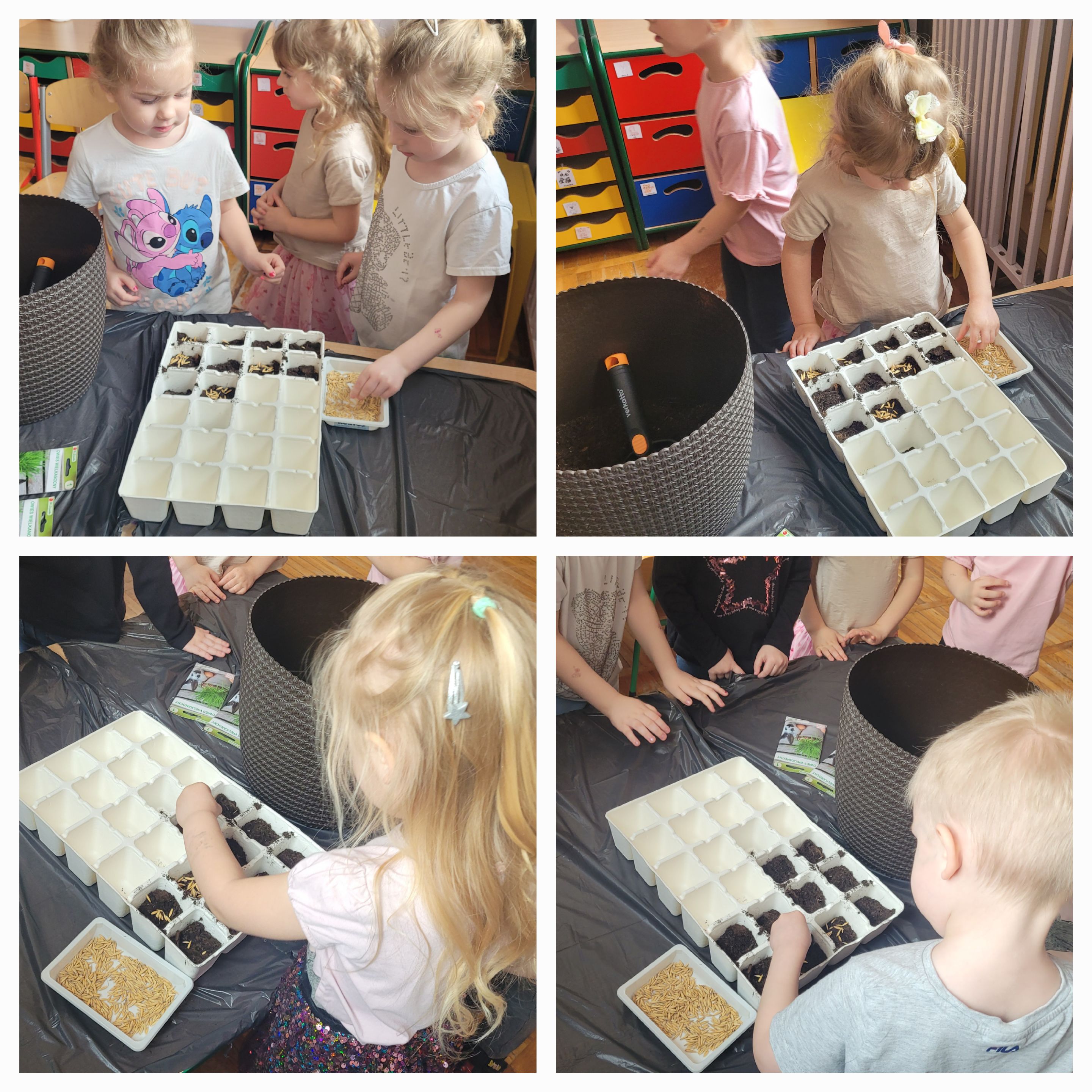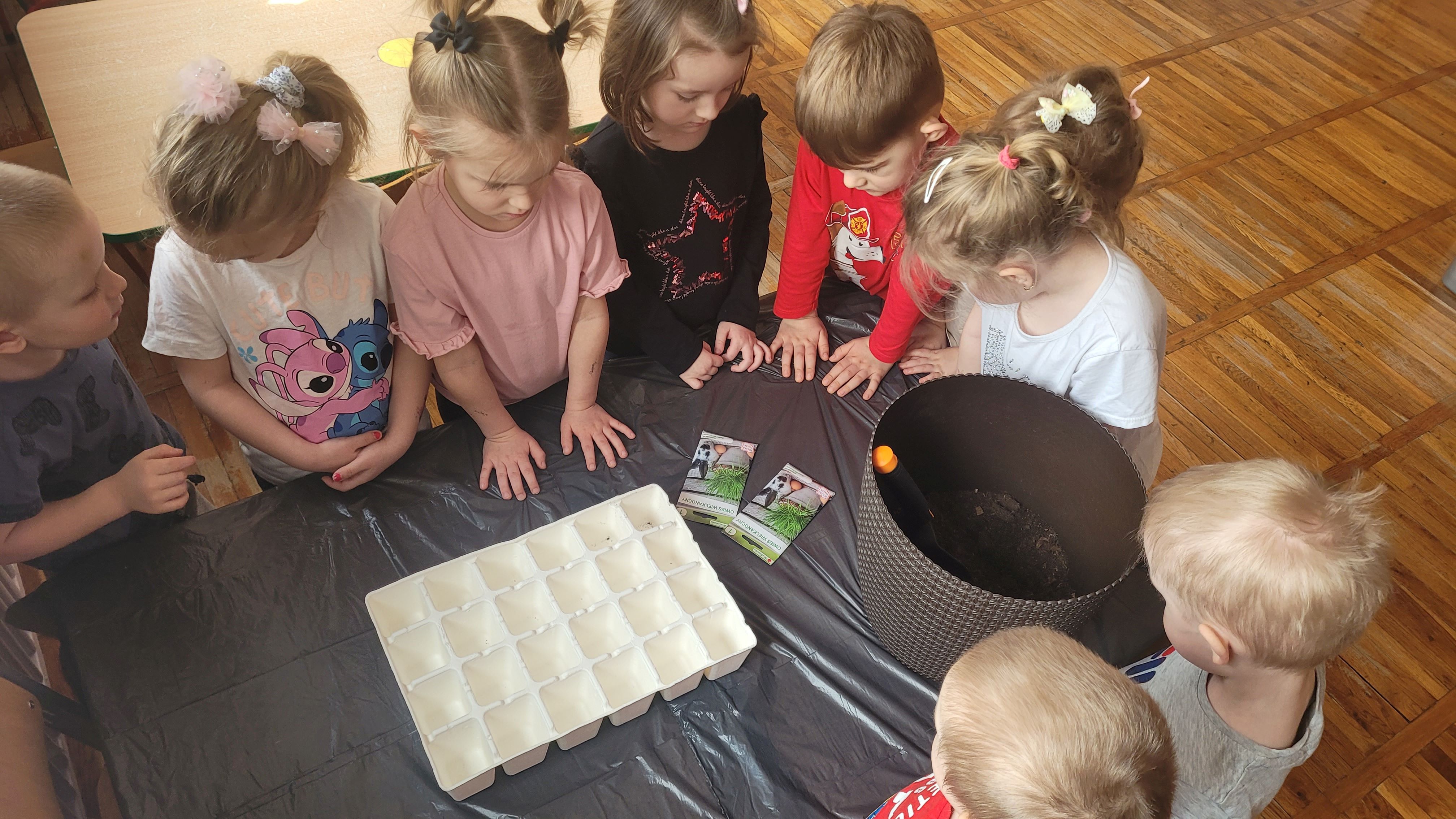 Dzieci z grupy Słoneczka wraz z przyjściem wiosny zamieniły się małych ogrodników. Przedszkolaki zasadziły świąteczny owies, który będzie super dekoracją z okazji zbliżających się świąt wielkanocnych oraz cebulkę dymkę. Sadzenie roślin w przedszkolu to doskonała okazja do rozwijania u dzieci wrażliwości, cierpliwości oraz odpowiedzialności.