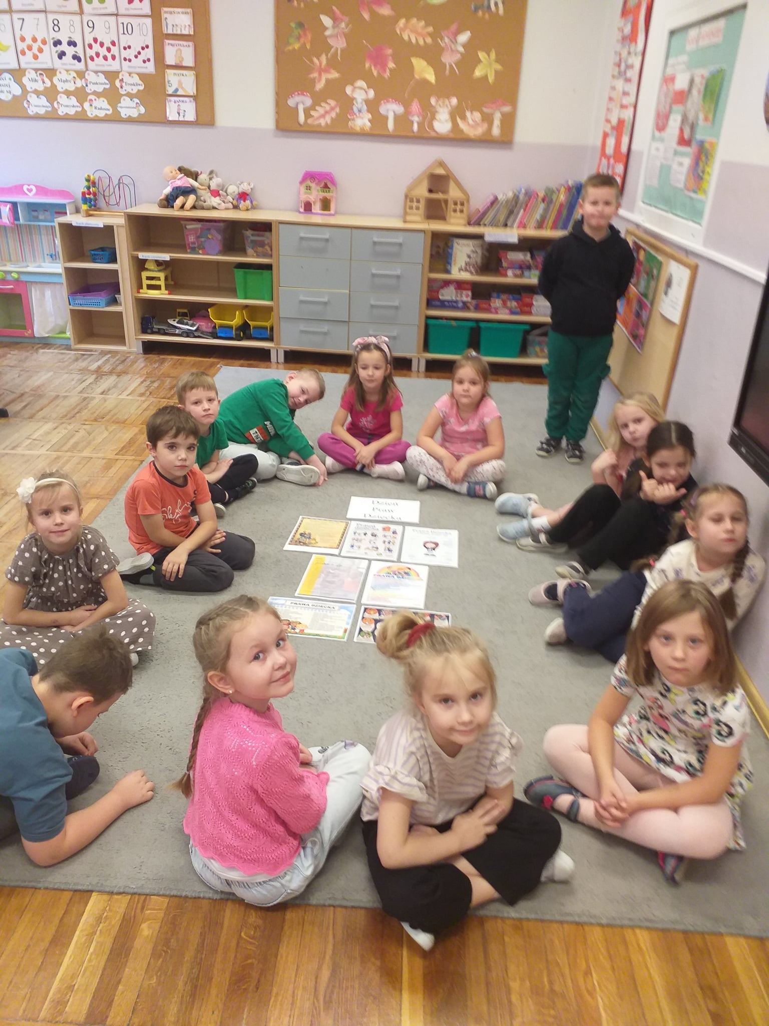 20 listopada dzieci z grupy Odkrywcy obchodziły Międzynarodowy Dzień Praw Dziecka. To jeden z ważniejszych dni Organizacji Narodów Zjednoczonych, która zajmuje się prawami dziecka na całym świecie. Na początku dzieci zapoznane zostały z prawami jakie mają. Następnie kolorowały spisane na kartach swoje prawa. Na koniec zrobiły sobie wspólną, pamiątkową fotografię z kartami swoich praw.