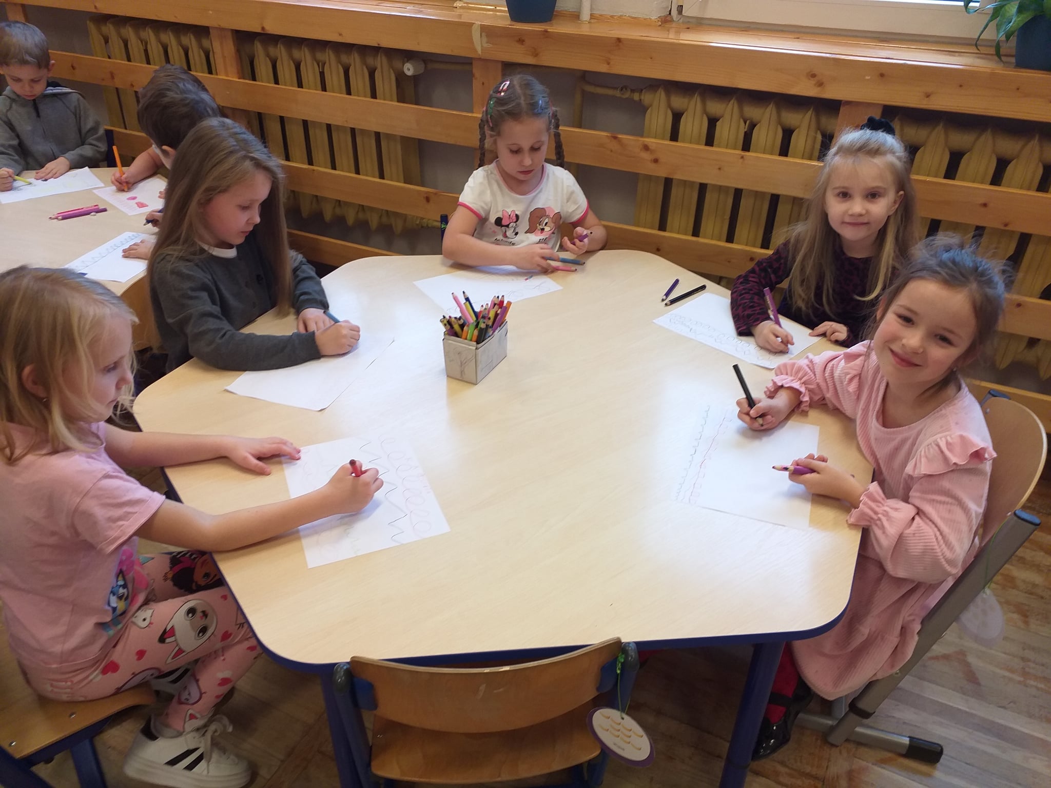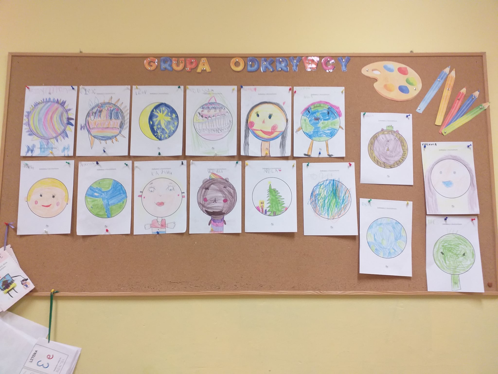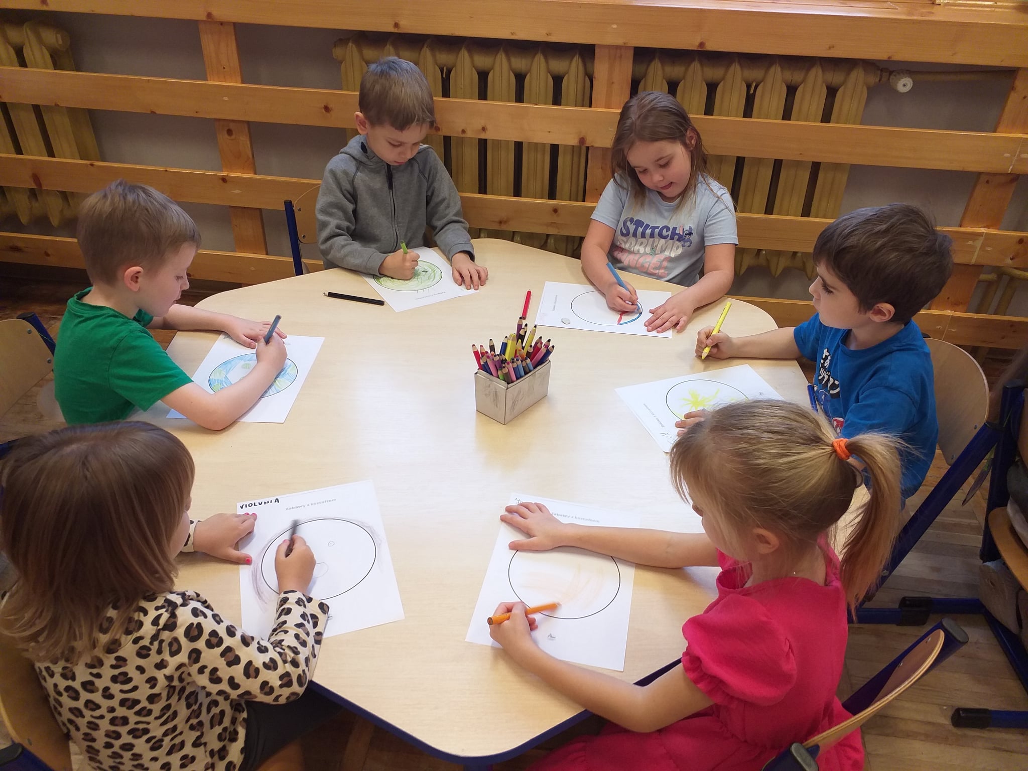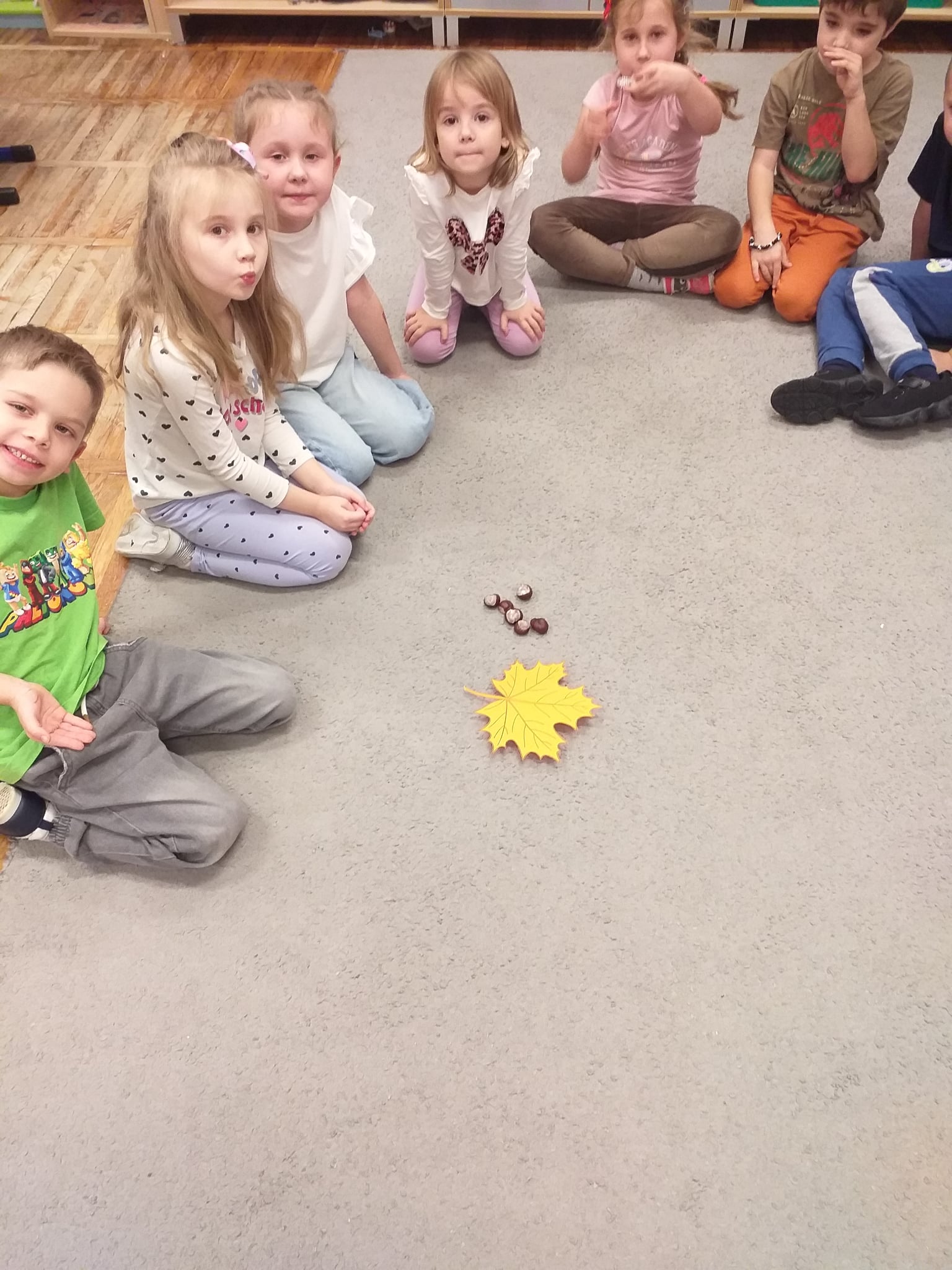 Od początku roku szkolnego dzieci z grupy Odkrywcy realizują Ogólnopolski Projekt Edukacyjny „Kreatywna Matematyka”. Jak sama nazwa wskazuje, jego celem jest innowacyjne i pomysłowe podejście do edukacji matematycznej poprzez wielozmysłowe poznawanie świata liczb, figur geometrycznych, działań oraz zagadnień matematycznych. Do tej pory wykonaliśmy 5 zadań zaproponowanych przez organizatorów projektu. Pierwsze zadanie polegało na układaniu patyków w szeregi, określaniu ich długości, a następnie ich mierzeniu. Drugie zadanie polegało na ustalaniu wyniku odejmowania kasztanów, które znikały pod jesiennym liściem. Trzecie zadanie polegało na dorysowywaniu dowolnych elementów do konturu koła, tak aby stworzyć pewien obraz. Czwarte zadanie polegało na rysowaniu na kartkach poznanych przez dzieci wzorów geometrycznych, figur geometrycznych, cyfr i znaków matematycznych. Piąte zadanie stanowiło wykonanie pracy plastycznej - obrazka z bałwankiem. Trzeba było wykleić kontur bałwanka kawałkami białego papieru, dokleić mu potrzebne elementy, a na tle umieścić śnieżynki. Zadaniem dzieci było także liczyć wszystkie elementy wykonywanej przez siebie pracy plastycznej.