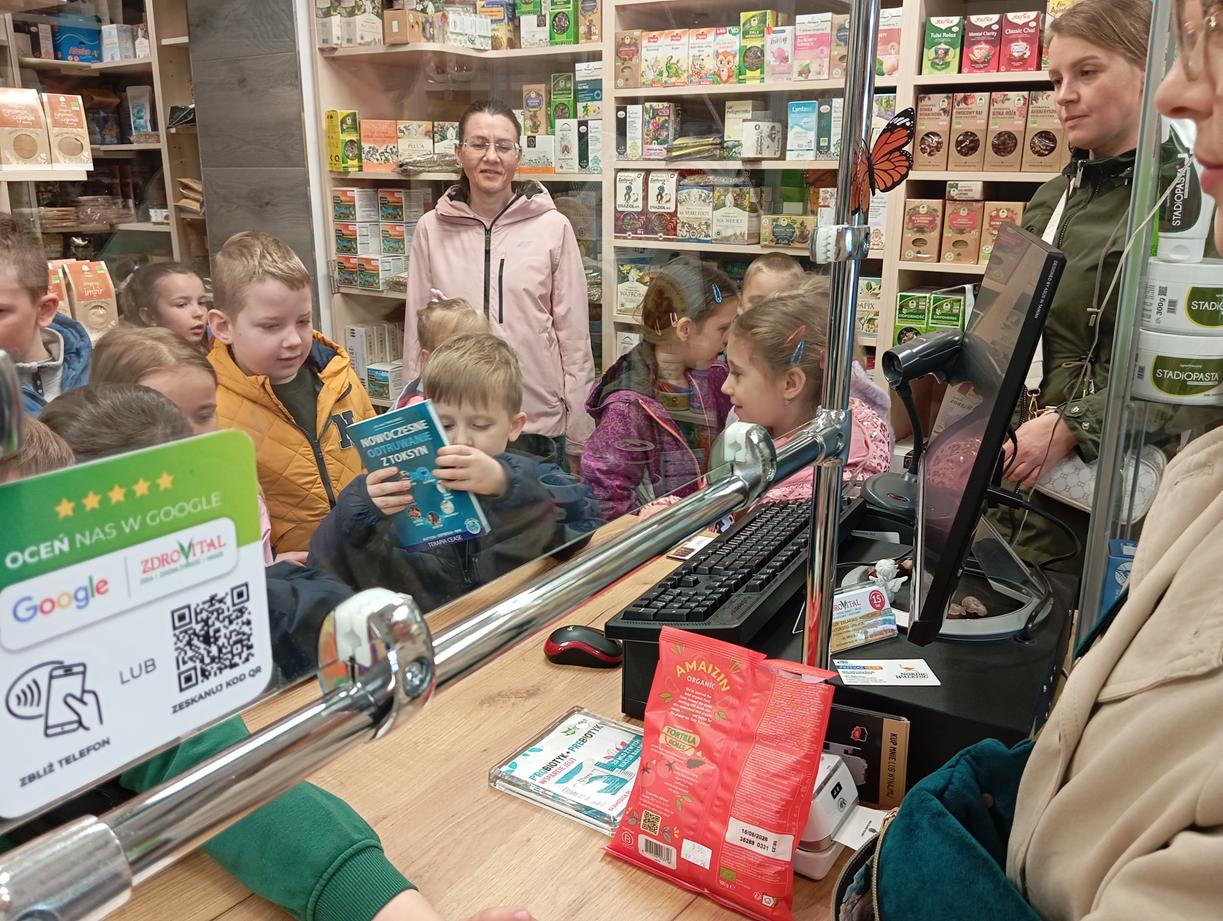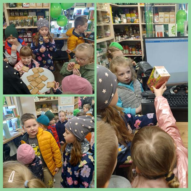 W ubiegłym tygodniu dzieci z grupy Odkrywcy, Motylki oraz Smerfy odwiedziły Sklep ze Zdrową Żywnością „Zdrovital”. W tym wyjątkowym miejscu dowiedziały się między innymi: skąd się biorą produkty ekologiczne, jak wygląda kasa i zawód sprzedawcy. Dzieci degustowały również produkty, które nie tylko były zdrowe, ale i smaczne.