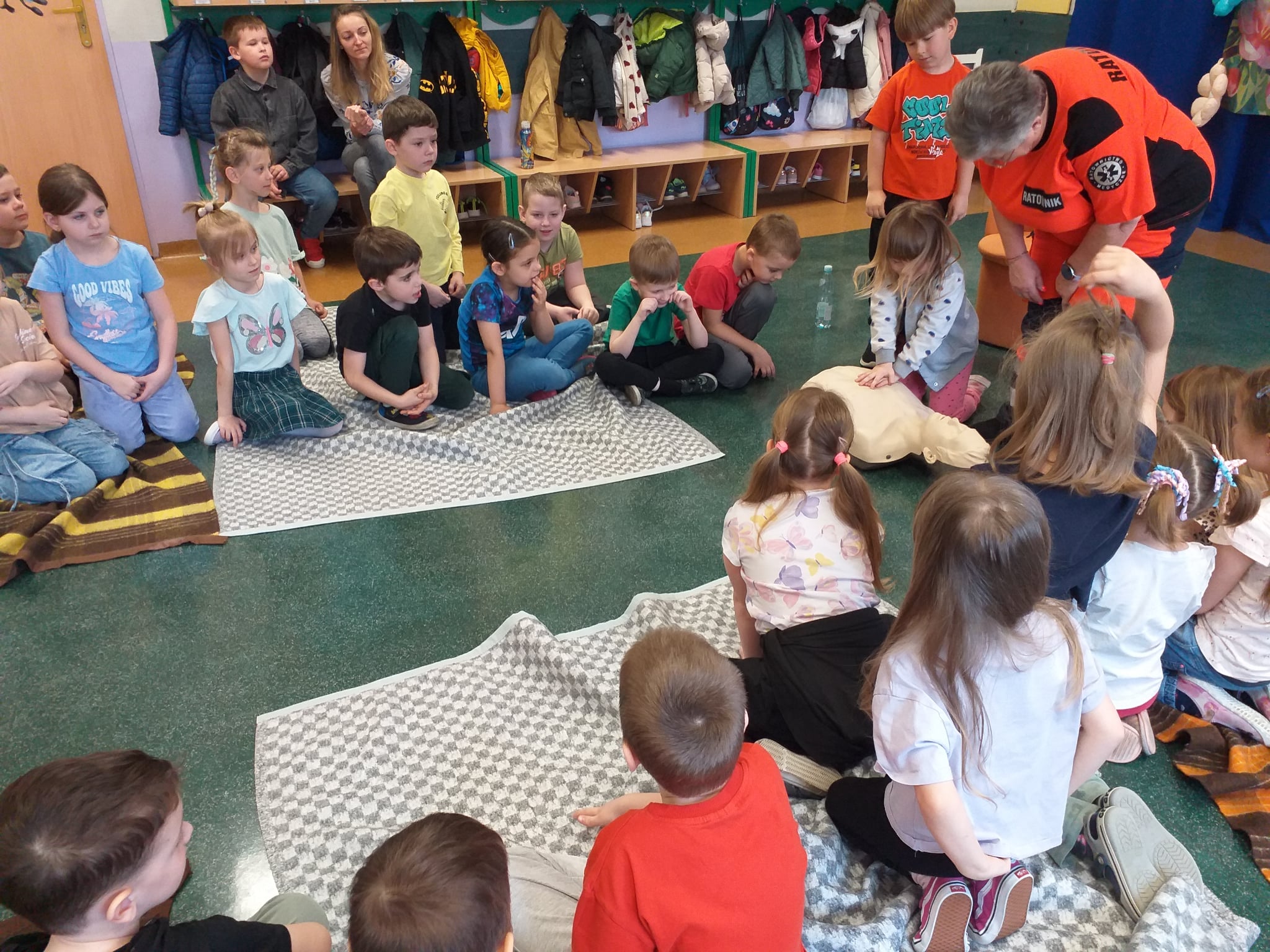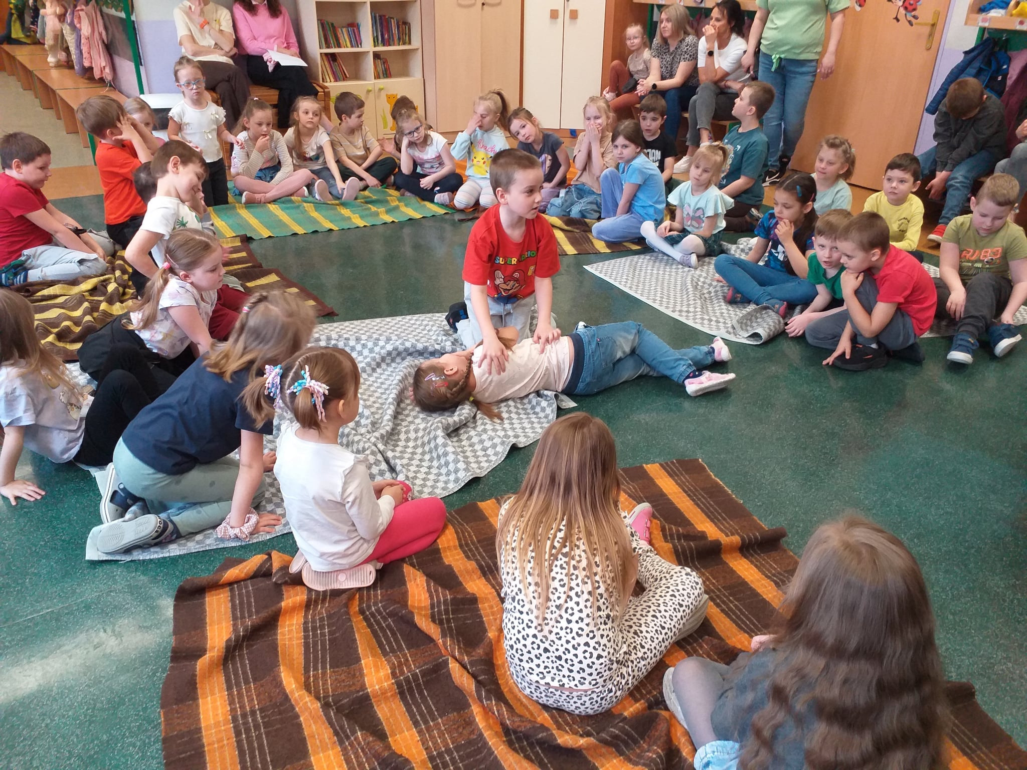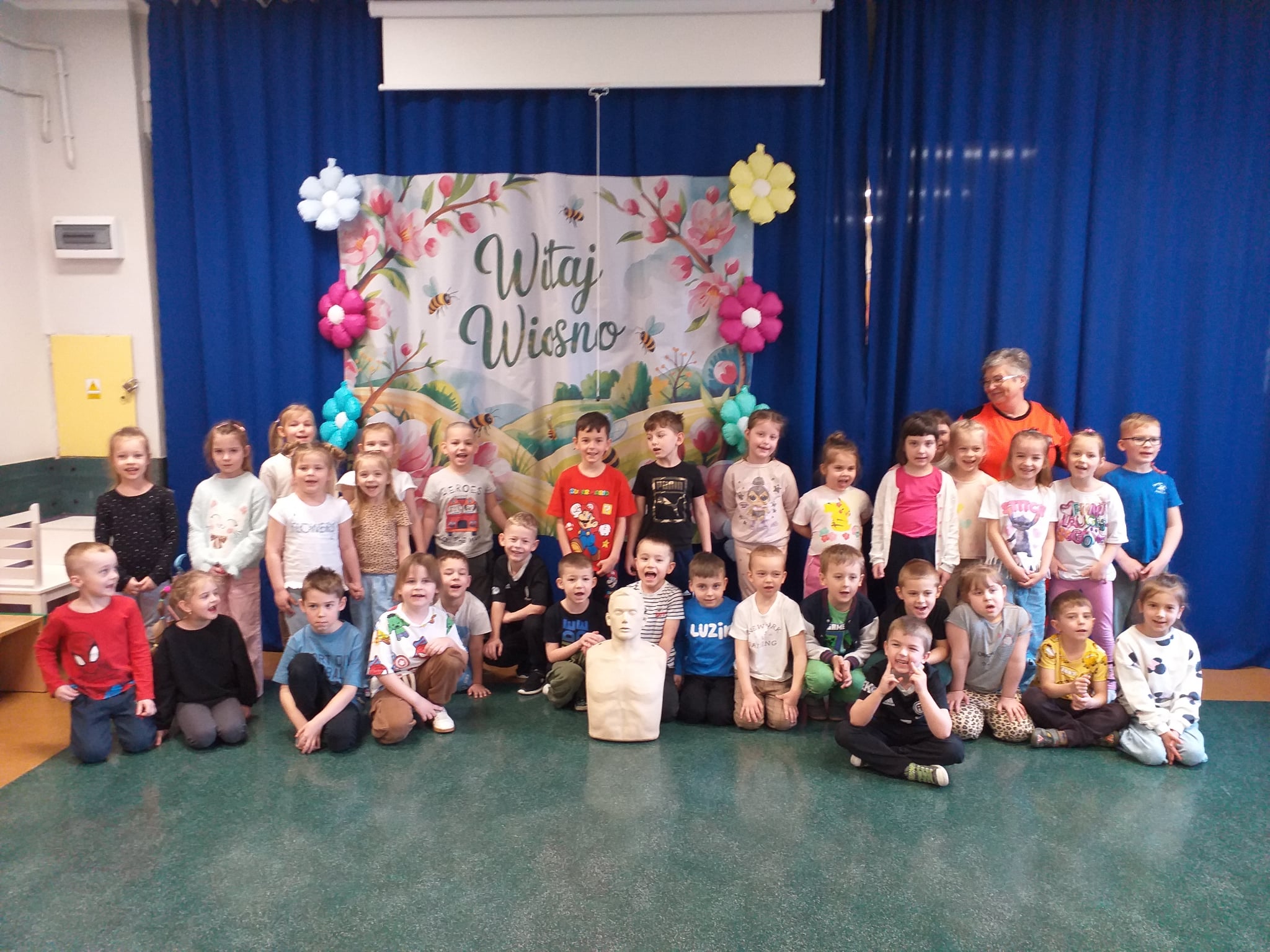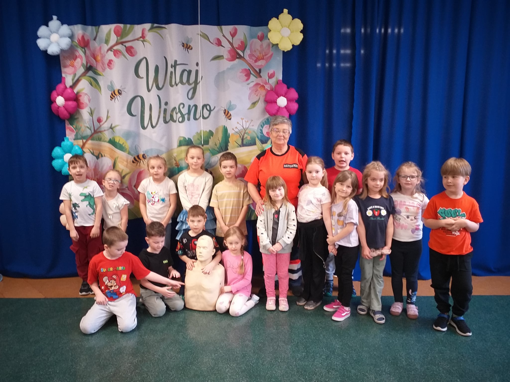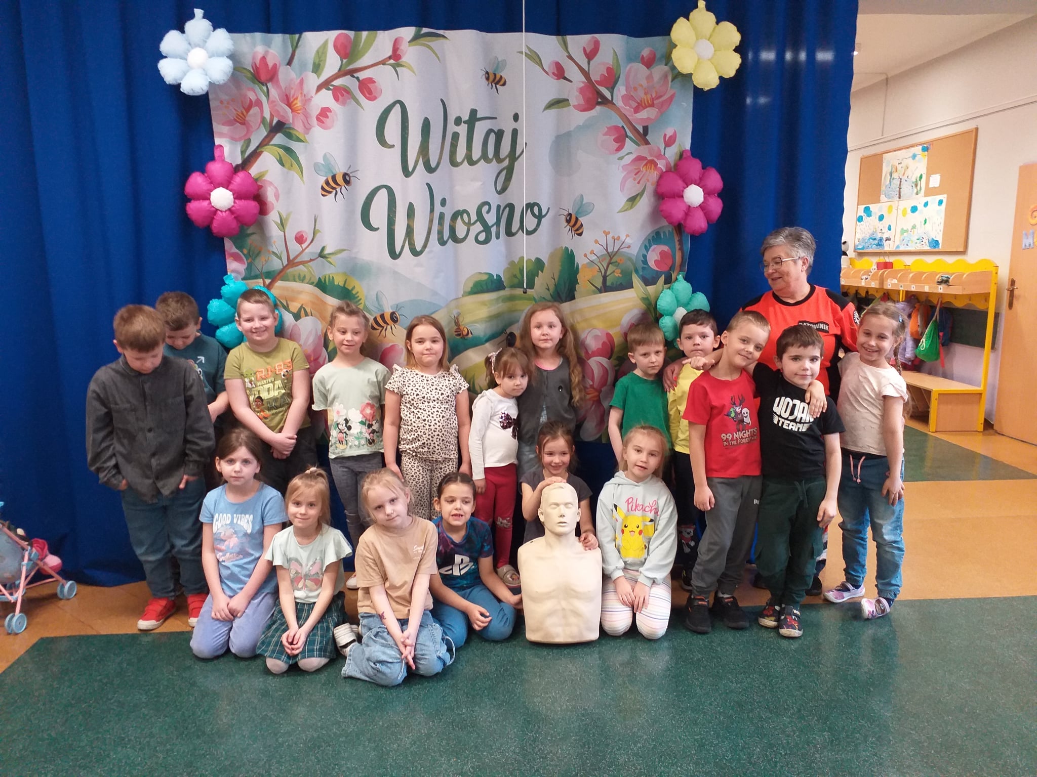 We wtorek 24 marca w naszym przedszkolu odbyło się spotkanie z ratownikiem medycznym. Uczestniczyły w nim wszystkie dzieci 5-letnie i 6-letnie. Pani ratownik zapoznała dzieci z zasadami udzielania pierwszej pomocy. Przedszkolaki przypomniały sobie numery alarmowe. Dowiedziały się jak należy sprawdzać przytomność osoby poszkodowanej. Uczyły się układania człowieka w pozycji bocznej ustalonej oraz ćwiczyły umiejętność wykonywania czynności ratujących życie na fantomie.