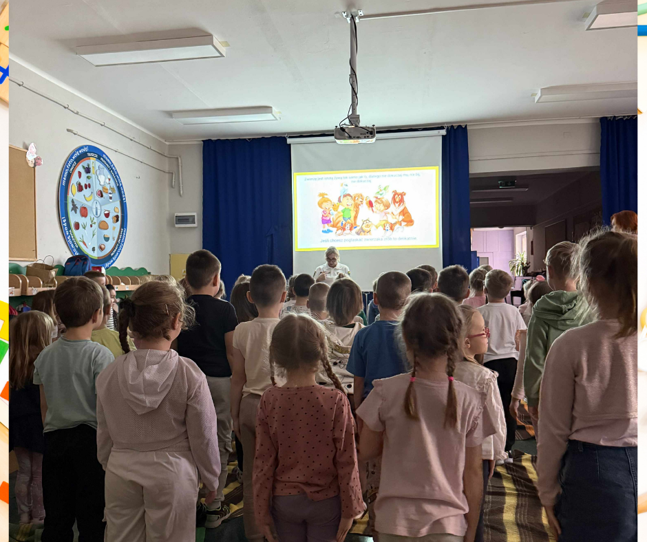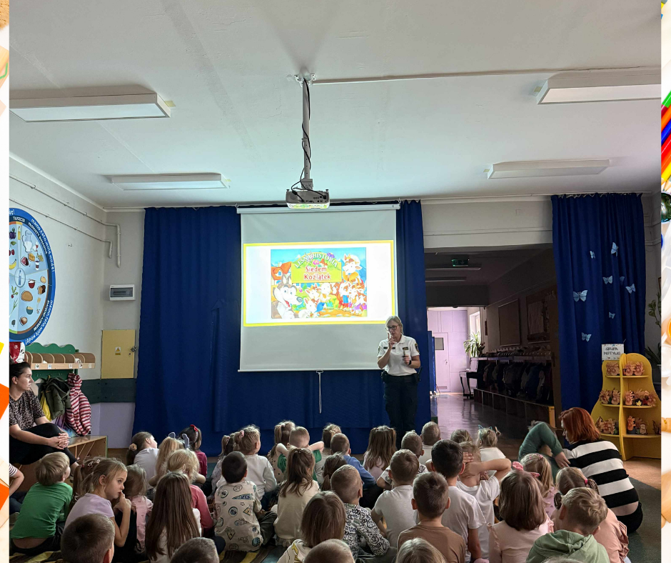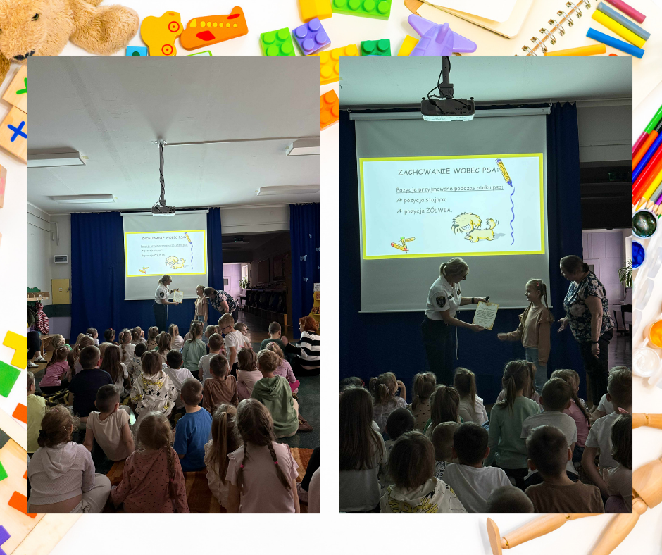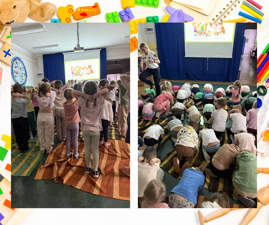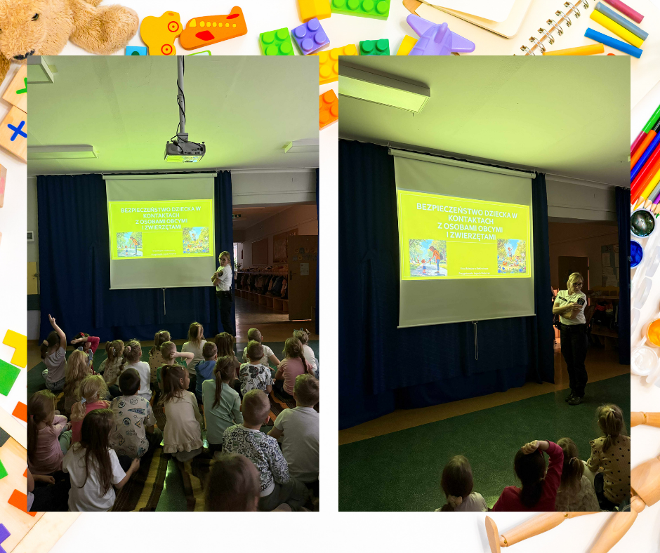 Przedszkolaki bardzo serdecznie dziękują za przeprowadzone zajęcia dotyczące bezpieczeństwa w kontaktach z obcymi ludźmi oraz zwierzętami. 6-latki miały okazję przypomnieć sobie zasady jakie obowiązują dzieci podczas spotkań z osobami obcymi, utrwaliły numer pod jaki mogą dzwonić, gdy coś się dzieje oraz jak szukać pomocy. Dzieci obejrzały ciekawe bajki, śpiewały piosenkę, odgrywały scenki tematyczne. Bardzo dziękujemy Pani Jagodzie, która jak zawsze w ciekawy sposób przekazała przedszkolakom bardzo ważne informacje.