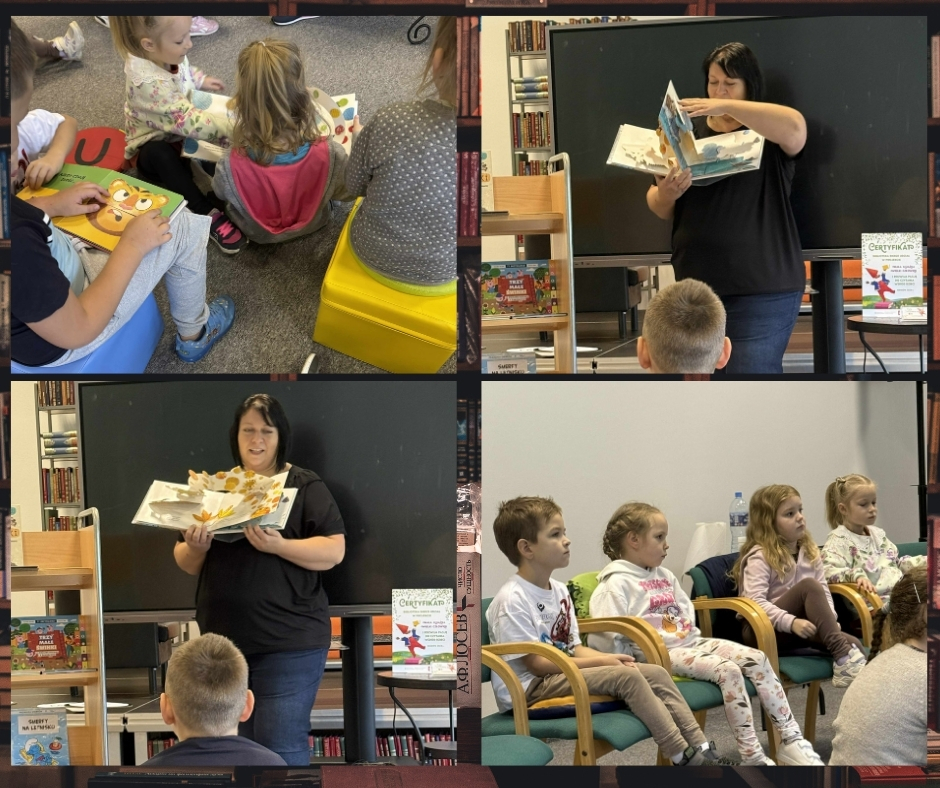 Nasze grupy 6-latków odwiedziły w dniach 1 i 2 października Miejską i Powiatową Bibliotekę Publiczną w Bełchatowie. Dzieci miały okazję poznać Panie, które tam pracują, zasady funkcjonowania tego miejsca, jak wygląda praca bibliotekarza oraz same wyszukiwały swoich ulubionych tytułów. Przedszkolaki wysłuchały bajek, zwiedziły ważne miejsca i same przyznały, że chętnie wypożyczaliby książki, by więcej czasu spędzać na czytaniu. Bardzo serdecznie dziękujemy przemiłym Paniom za tak ciekawe przedstawienie miejsca, przeczytanie ciekawych bajek, promowanie miejsc sprzyjającym rozwijaniu kultury, estetyki i nauki.