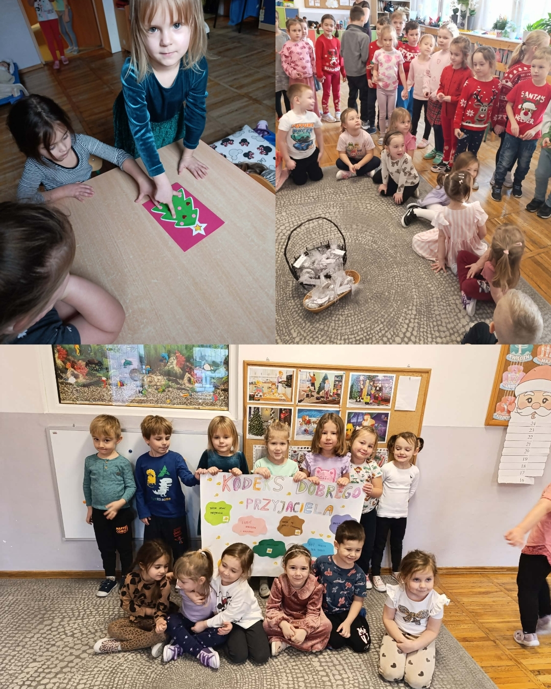 Tydzień życzliwości w naszym przedszkolu to już tradycja. Jest on autorskim projektem edukacyjnym realizowanym co roku w naszej placówce. Uczy on tolerancji, akceptacji, szacunku do kolegów, rówieśników, starszych, chorych i ubogich. Każdy dzień dotyczy aspektu życzliwości wobec różnych osób. W tym roku przyłączyły się do przedszkola również klasy I. Dodatkowymi działaniami jest akcja charytatywna „Herbatka dla seniora na zimowe wieczory” oraz spektakl niespodziankowy w wykonaniu nauczycieli dla przedszkolaków. Wszystkie grupy wzorowo wykonały wszystkie zadania. Najbardziej przyjemne według dzieci było obdarowywanie siebie wzajemnie prezentami oraz przedstawienie – niespodzianka.