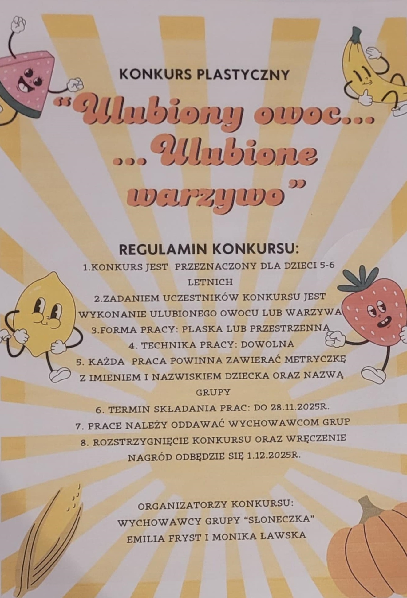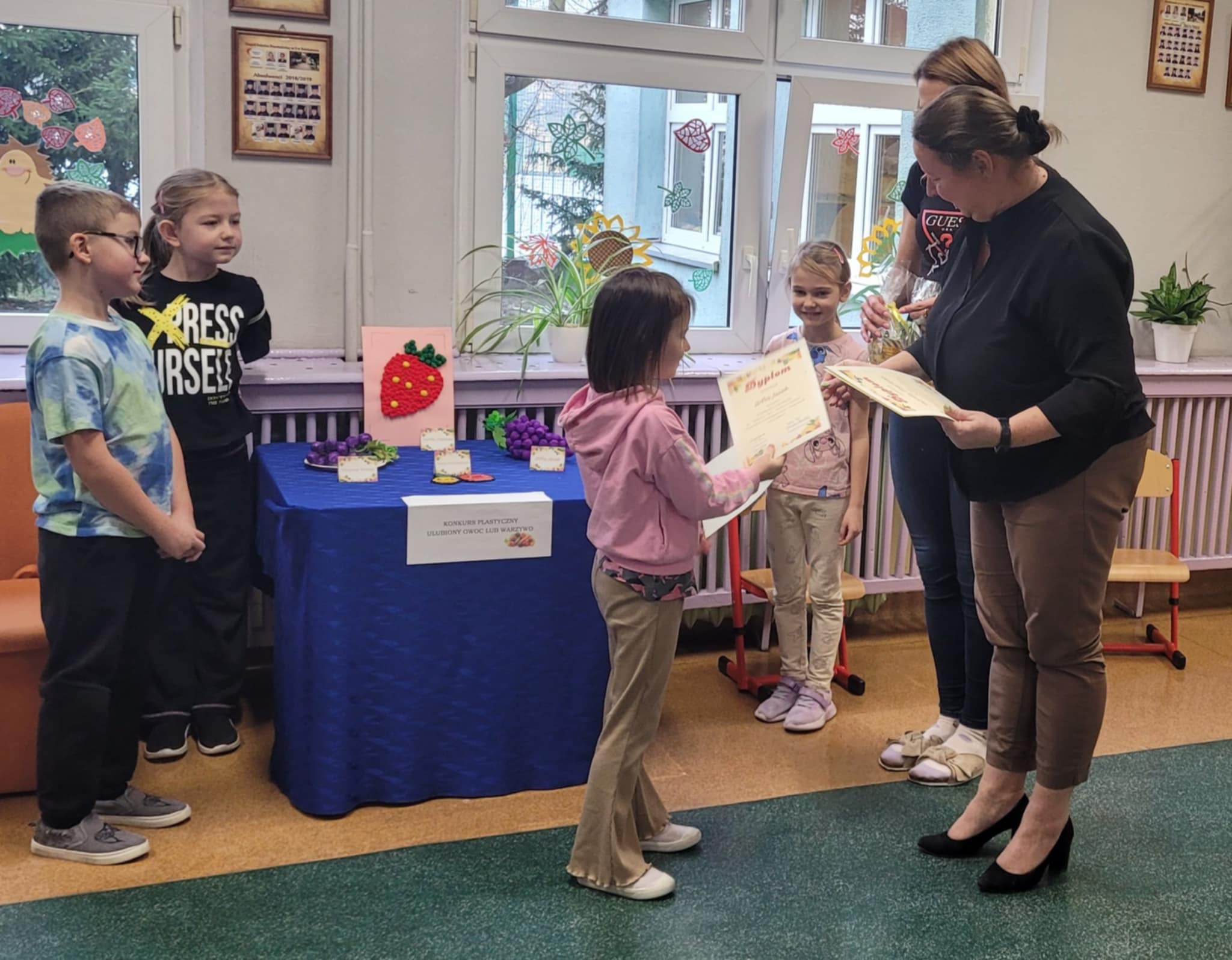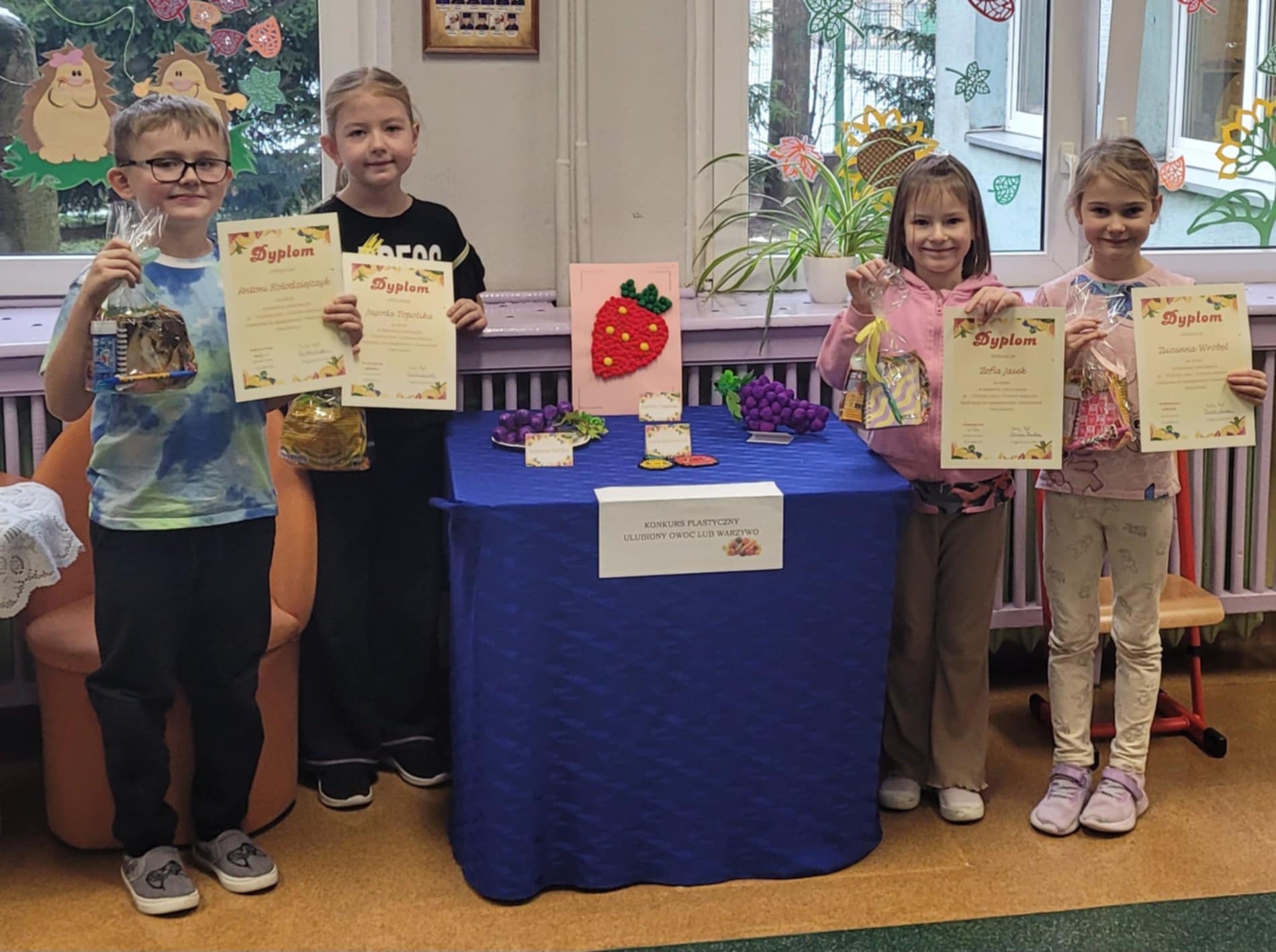 1 grudnia odbyło się podsumowanie konkursu plastycznego „Ulubiony owoc...Ulubione warzywo”. Przedszkolaki z grup 5-6-letnich wykonały piękne prace za które zostały nagrodzone dyplomami i drobnymi upominkami.