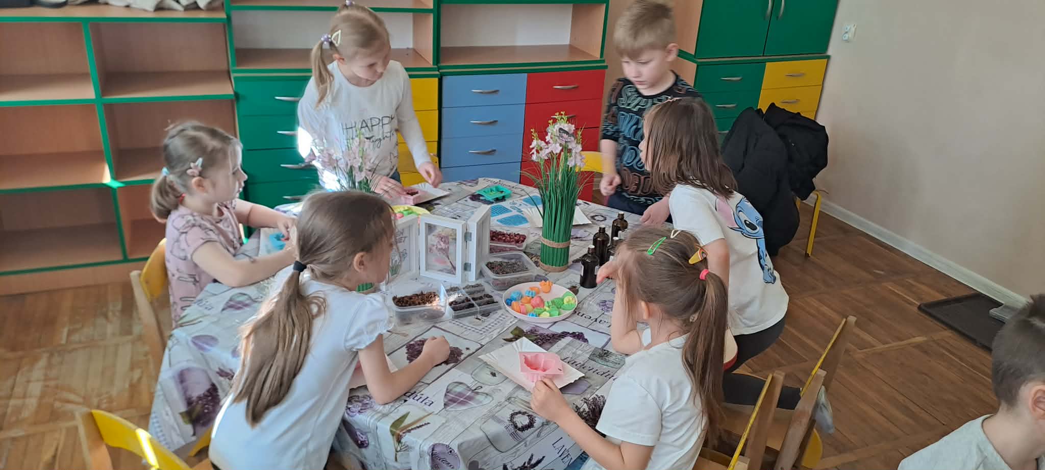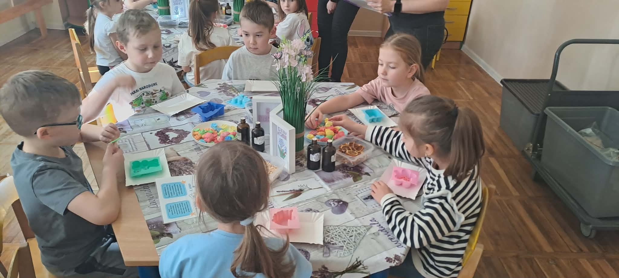 W naszym przedszkolu odbyły się warsztaty mydlarskie, w których udział wzięły grupy Motylki, Odkrywcy i Smerfy. Efektem ich pracy były piękne, pachnące mydełka, które dzieci wykonały z dużym zaangażowaniem.