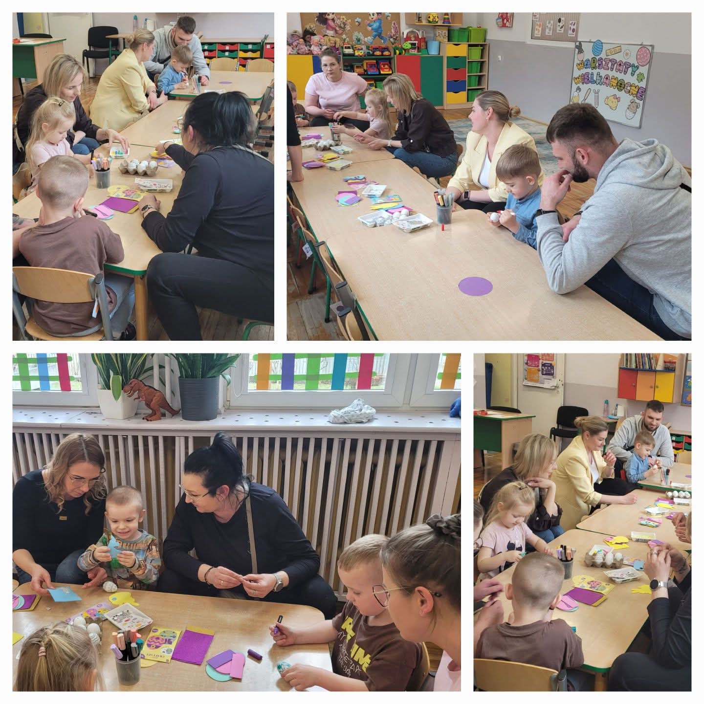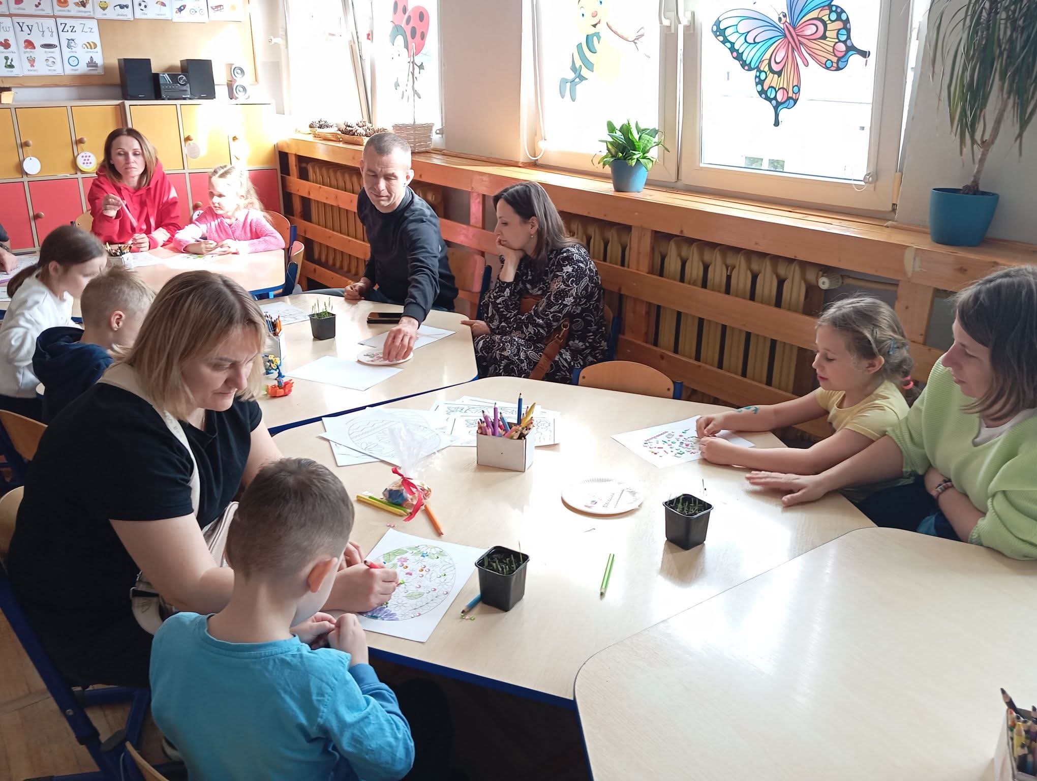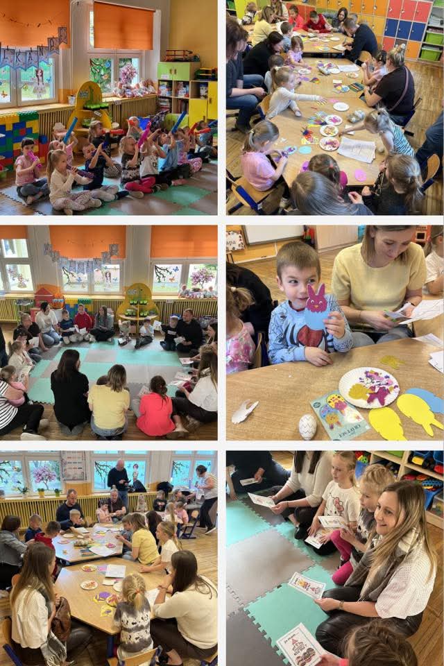Z okazji nadchodzących Świąt Wielkanocnych w naszym przedszkolu odbyły się dla dzieci warsztaty wraz z rodzicami. Dzięki takim spotkaniom dzieci zapoznają się z symbolami świąt, rozwijają sprawność manualną poprzez twórcze prace plastyczne. Takie zajęcia integrują grupę, angażują rodziców oraz budują radosną atmosferę oczekiwania na święta.