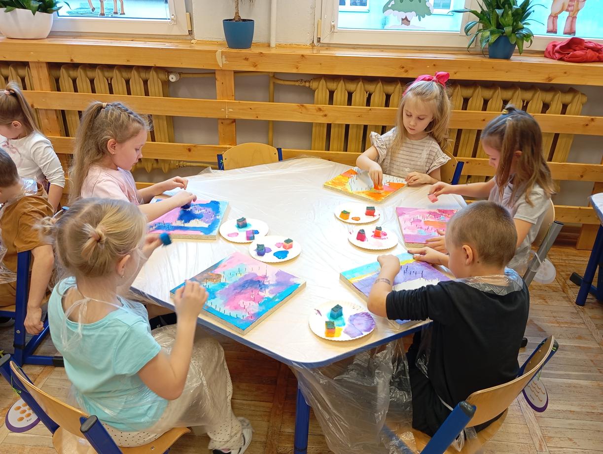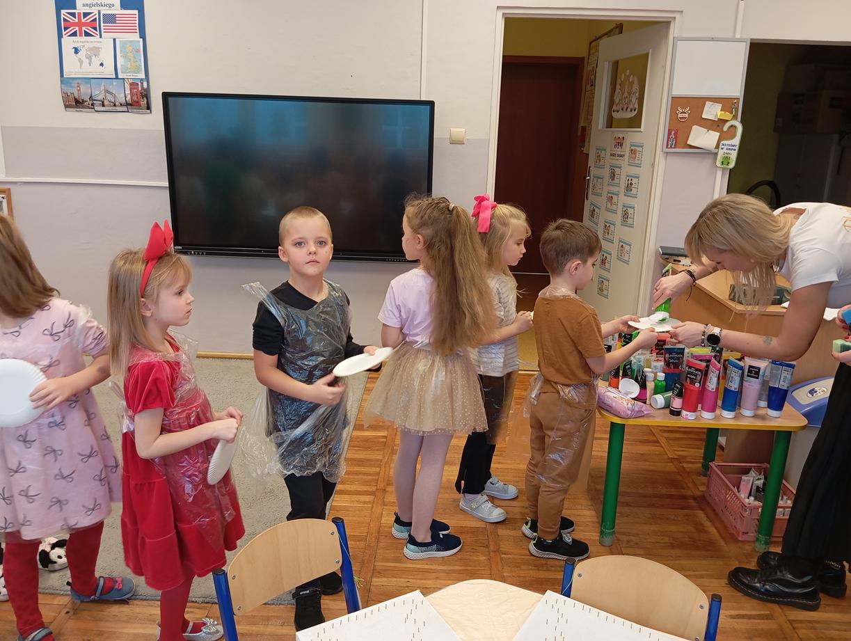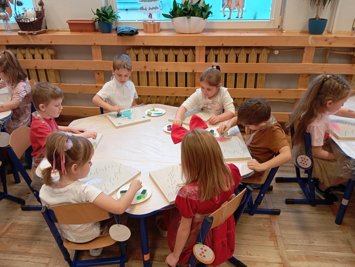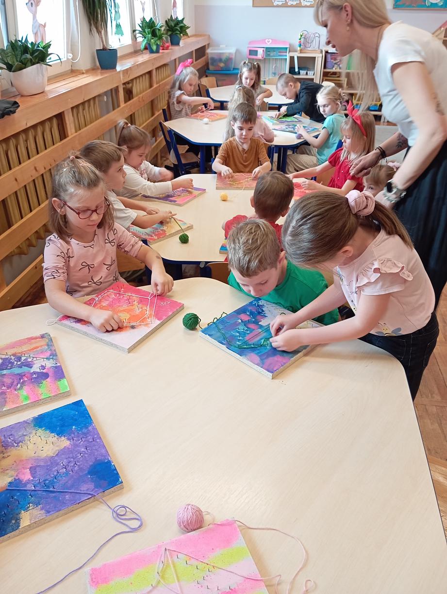 16 grudnia w grupie Odkrywcy odbyły się Warsztaty z „Pleciugą”. Dzieciaki własnoręcznie wykonały ozdoby z motywem świątecznym. Samodzielnie dokonywały wyboru kolorów farb i włóczek. Z zaangażowaniem pracowały nad swoimi lampkami aż do momentu gdy te rozbłysły światłem.