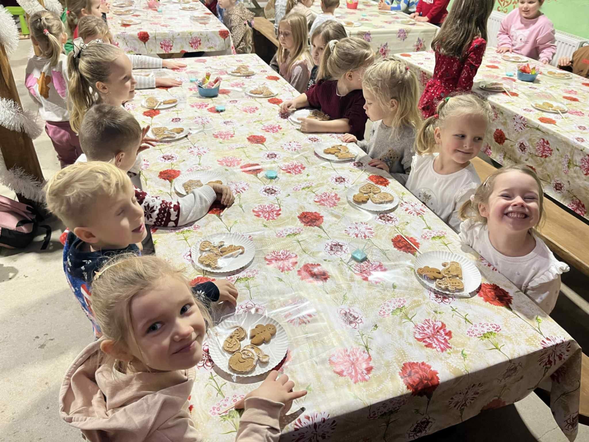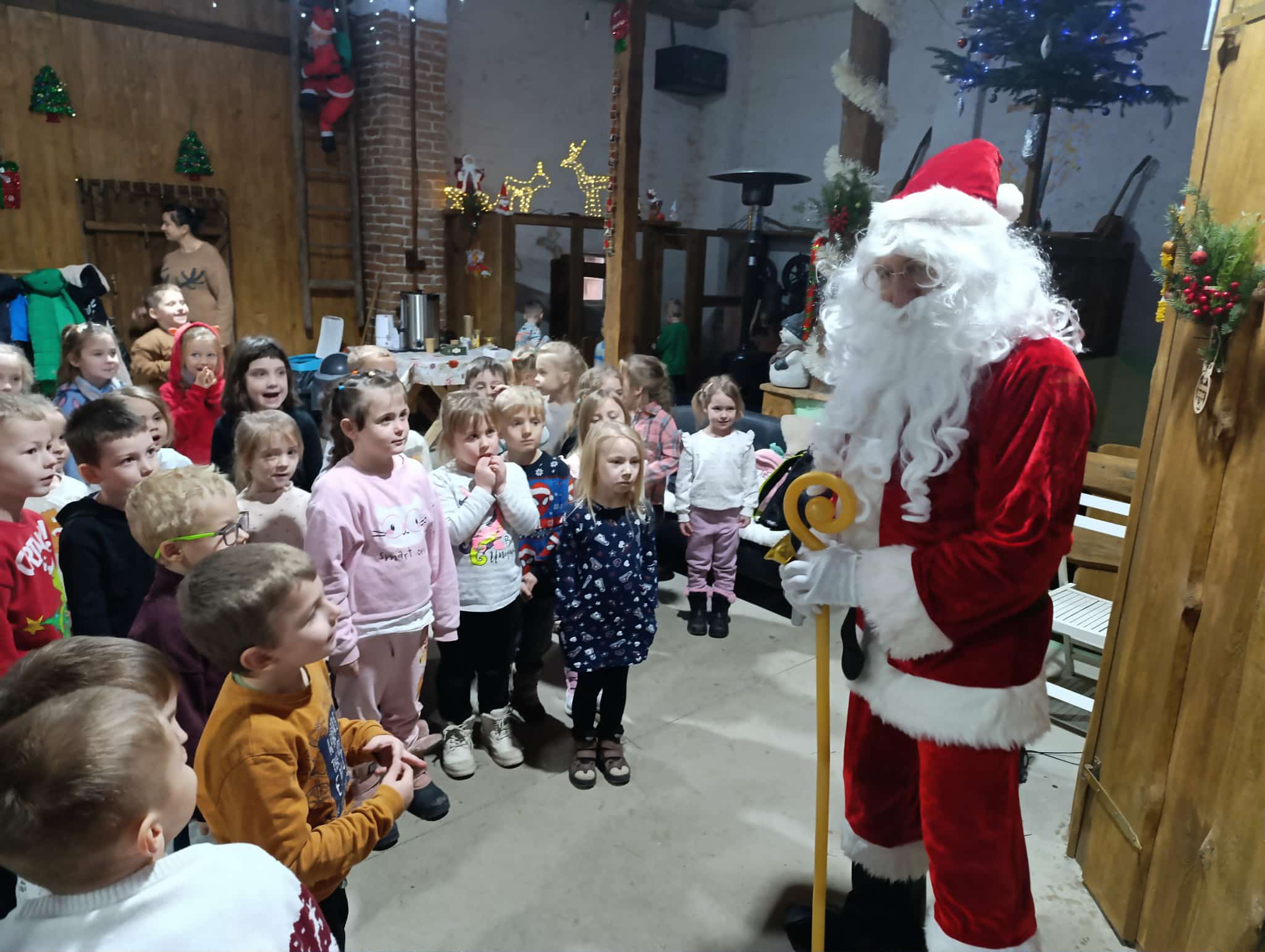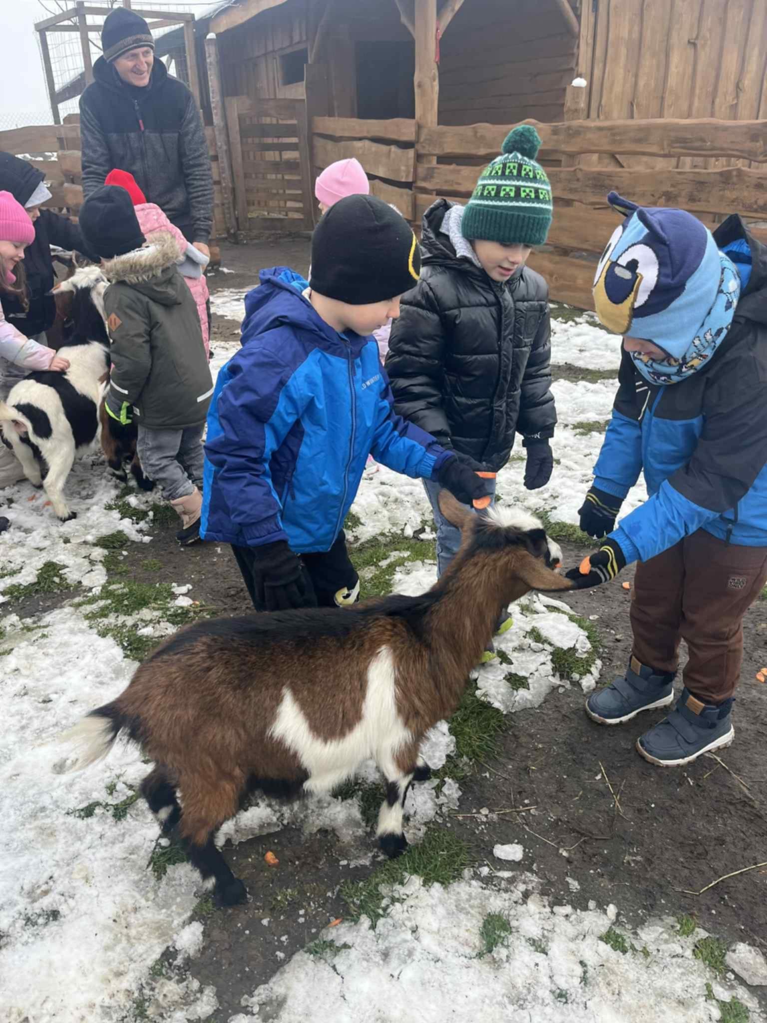 2 grudnia dzieci z grupy Żabki i Misie odwiedziły Agroturystykę ,,Markowa kraina" w Niedyszynie. Przedszkolaki miały okazje zobaczyć i nakarmić zwierzęta, tj. alpaki, kozy, kaczki. Po spacerze na świeżym powietrzu dzieci dekorowały pierniki, ozdabiały bombki, tworzyły bałwanki, bawiły się ze zwierzątkami, robiły pamiątkowe zdjęcia z białym misiem. Na koniec pojawił się gość specjalny – Święty Mikołaj, który wręczył dzieciom upominki. Był to dzień pełen radości i niespodzianek.