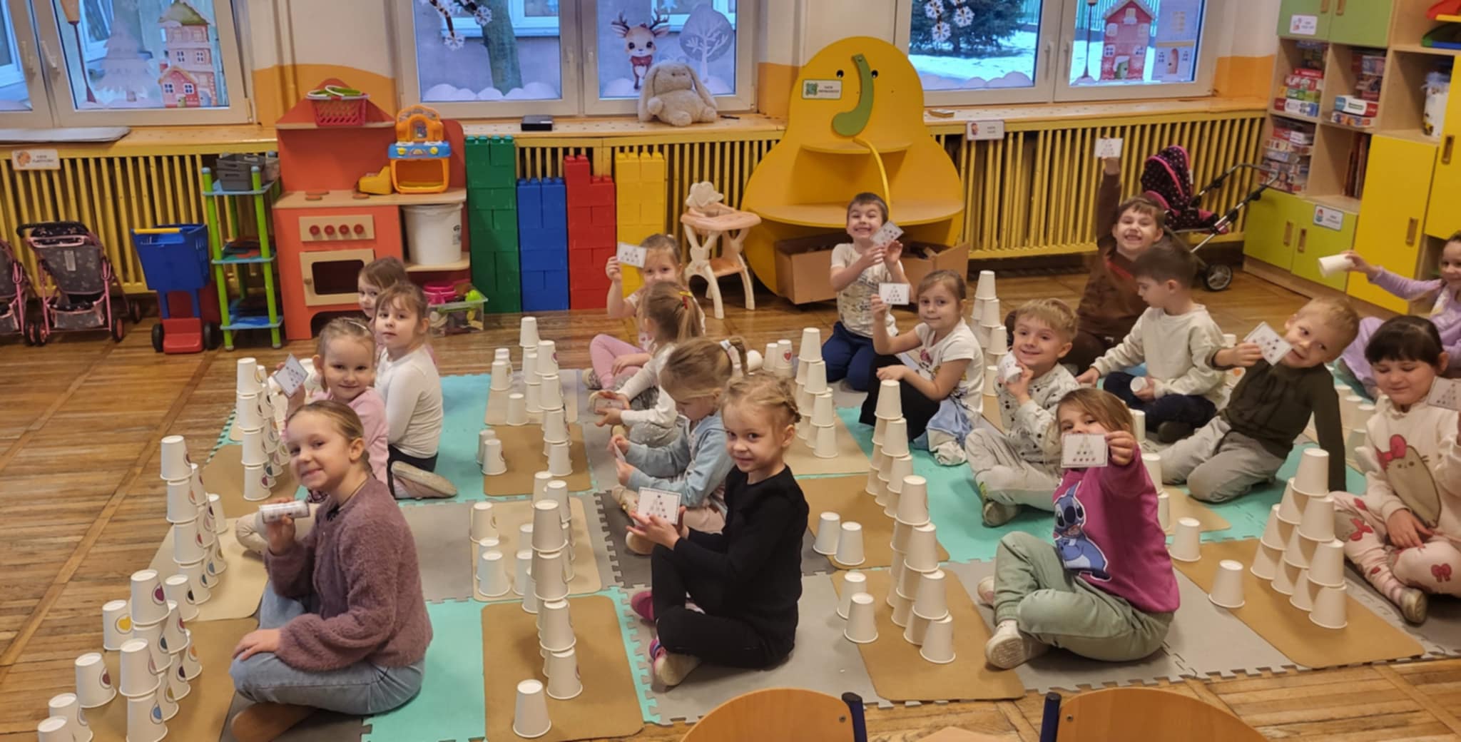 Podczas zajęć dzieci z grupy Żabki rozwijały swoje umiejętności matematyczne poprzez zabawę z kubeczkami i klockami Nemi. Przedszkolaki uczyły się liczyć, odtwarzały kody z tablicy multimedialnej i kartoników ćwicząc koncentrację uwagi, spostrzegawczość, logiczne myślenie. Zabawa przez działanie sprawiła wiele radości i zachęciła do samodzielnych odkryć.