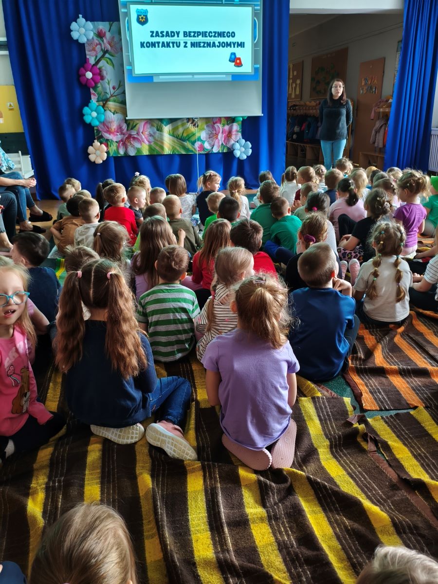 W dniu dzisiejszym przedszkolaki miały spotkanie z panią pedagog, którego tematem były zasady bezpiecznego kontaktu z nieznajomymi. Dzieci przypomniały sobie podstawowe reguły, miedzy innymi takie jak unikanie rozmów z obcymi osobami oraz nieprzyjmowanie od nich żadnych przedmiotów. Obejrzały również bajkę edukacyjną pt. „Zasady bezpieczeństwa podczas spotkania z nieznajomymi”, która pomogła utrwalić właściwe zachowania w różnych sytuacjach. Na zakończenie przedszkolaki przypomniały sobie najważniejsze numery alarmowe oraz sytuacje, w których należy z nich korzystać.